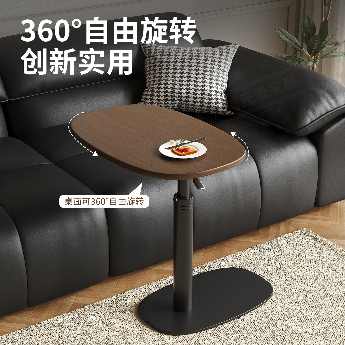 实木升降边几客厅意式轻奢沙发侧边桌胡桃木色旋转角几阳台高级感
