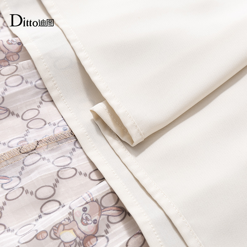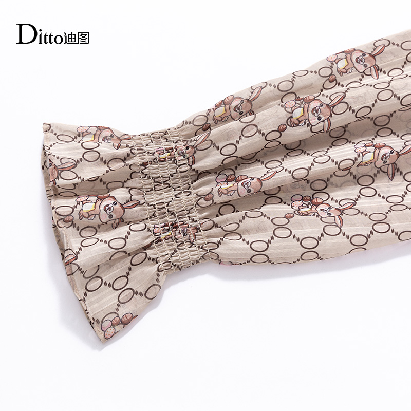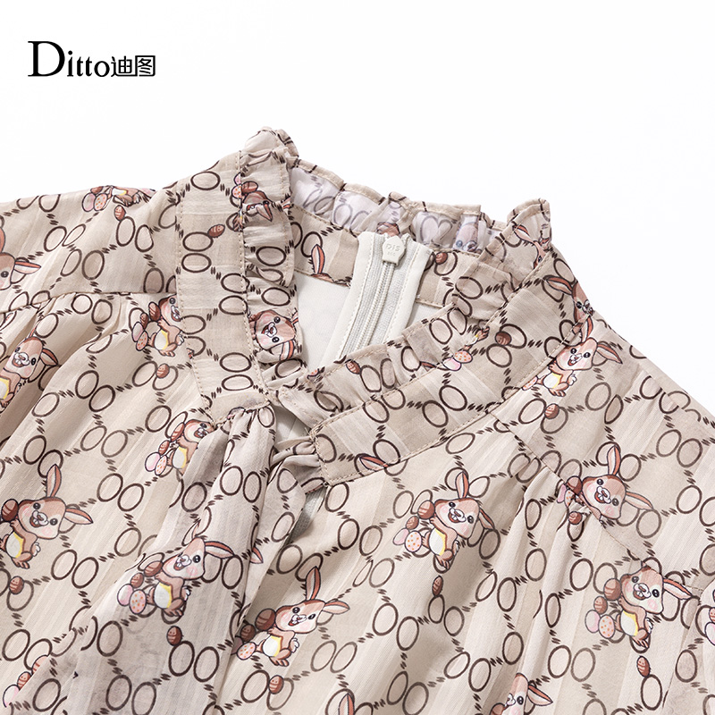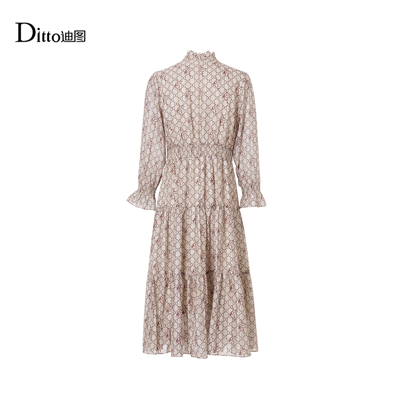 ditto迪图碎花连衣裙女秋修身显瘦收腰高级感洋气荷叶边中长裙