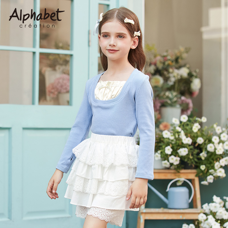 爱法贝童装春秋新款女童打底衫洋气时髦中大儿童装长袖t恤薄