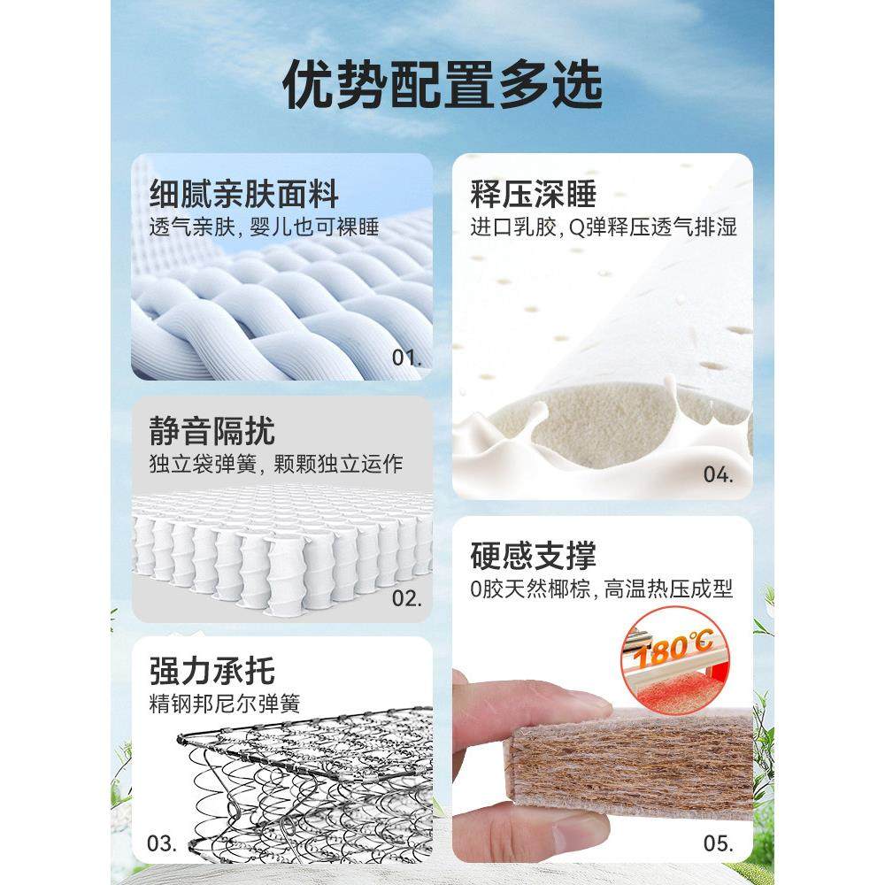 皖宝床垫独立弹簧乳胶椰棕两用静音棕垫硬垫1.5/1.8m老人名牌十大