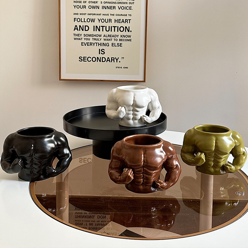 男友肌肉水杯情侣搞怪杯子小众设计感陶瓷马克杯学生闺蜜生日礼物