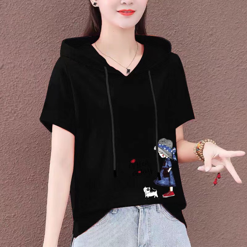 山东青岛即墨卫衣女短袖全棉t恤戴帽子夏季薄款小衫胖子mm大码白