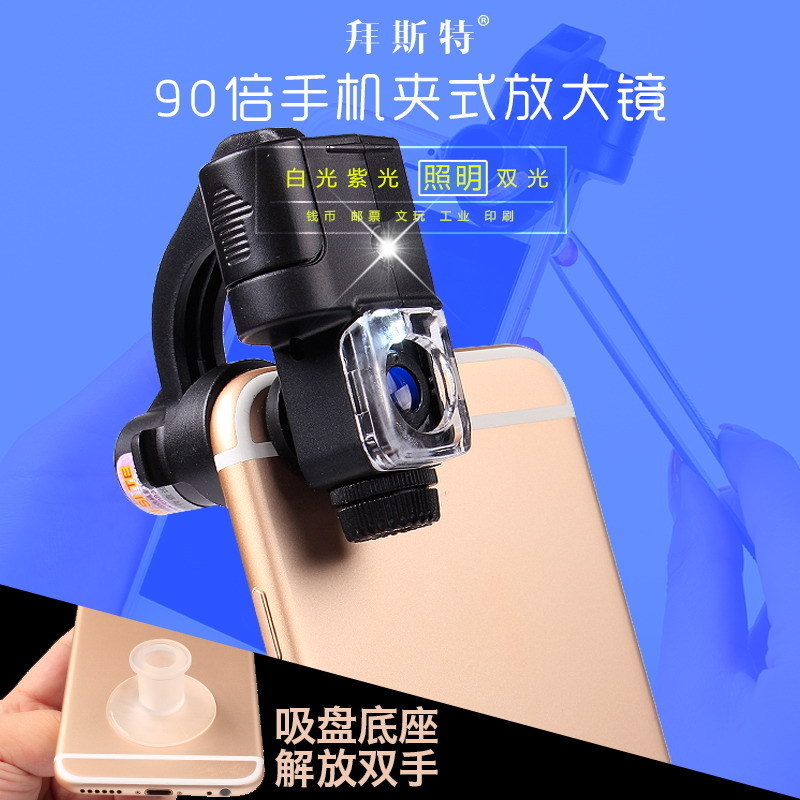放大镜带led灯90倍X手机显微镜便携鉴定珠宝玉石翡翠文玩邮票工具