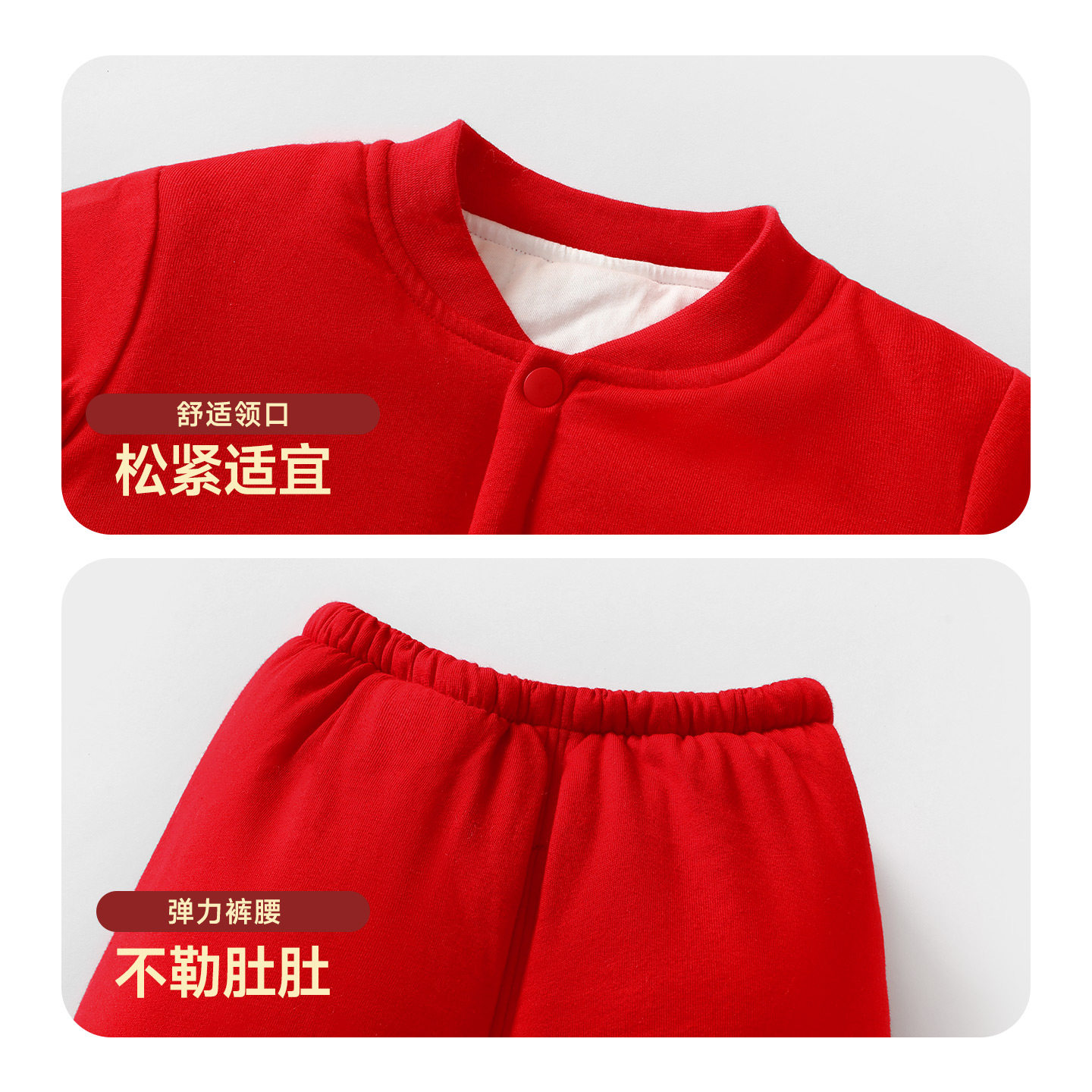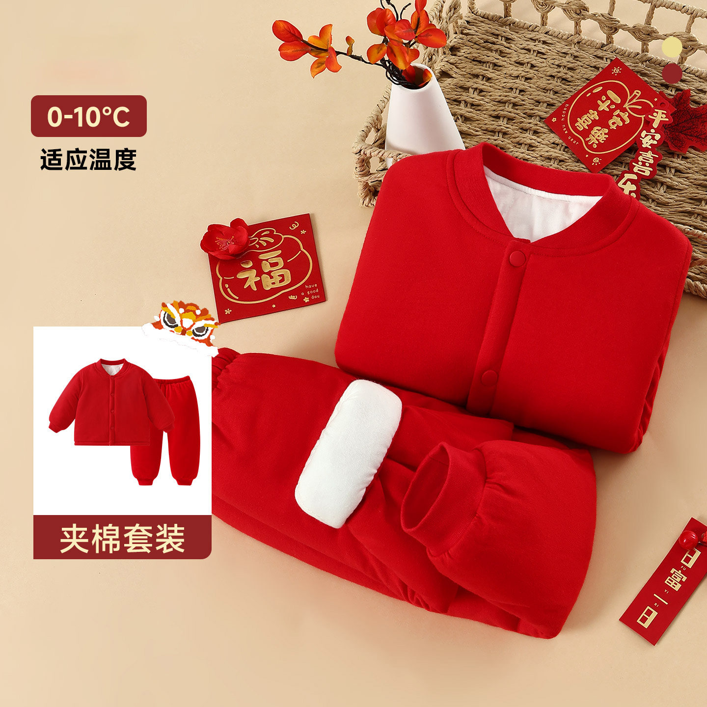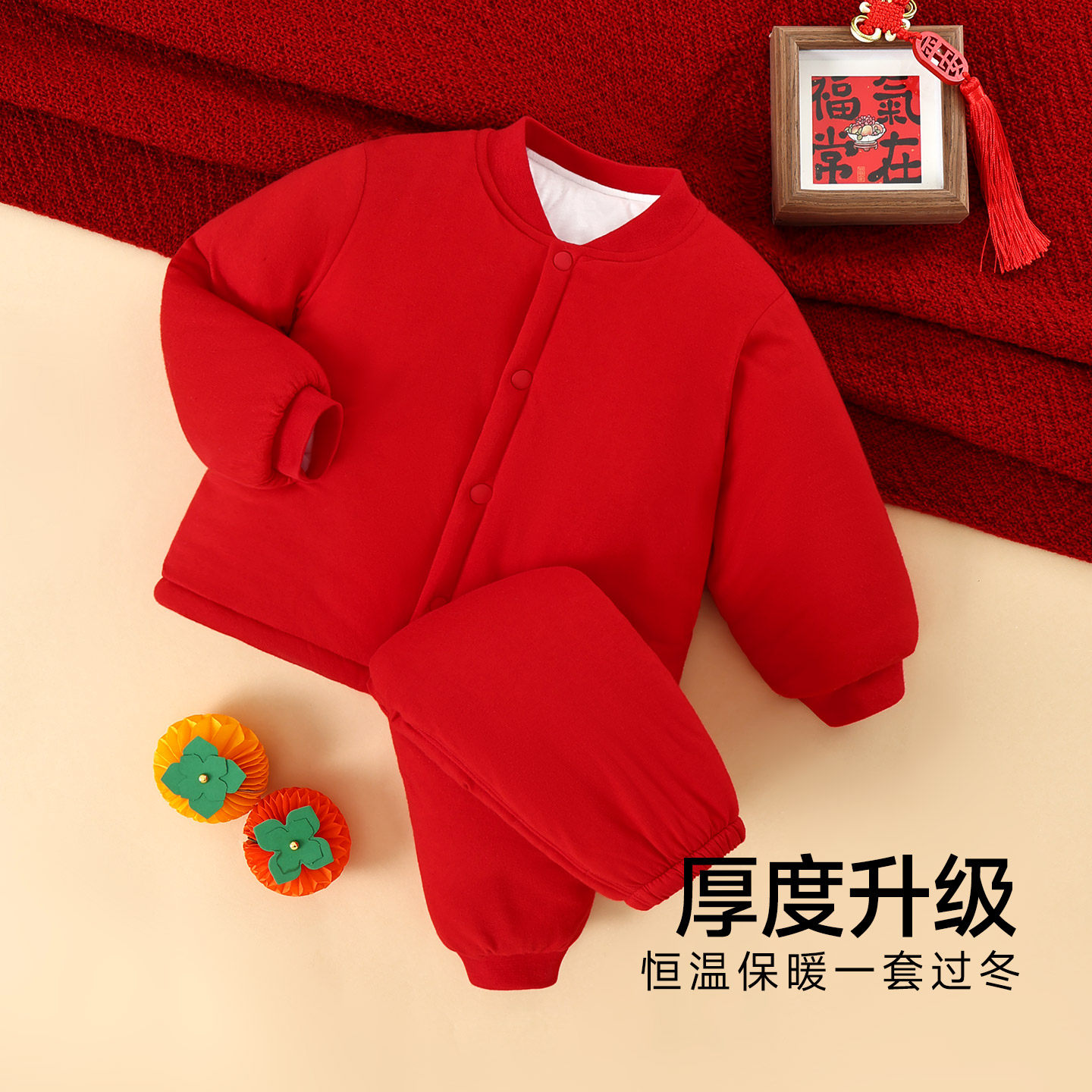 儿童套装秋冬季新款女宝红色周岁新中式居家过年男童加厚保暖冬装