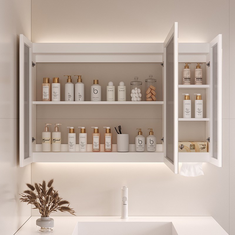 智能单独镜柜卫生间挂墙式置物架实木浴室储物柜化妆镜带灯收纳架