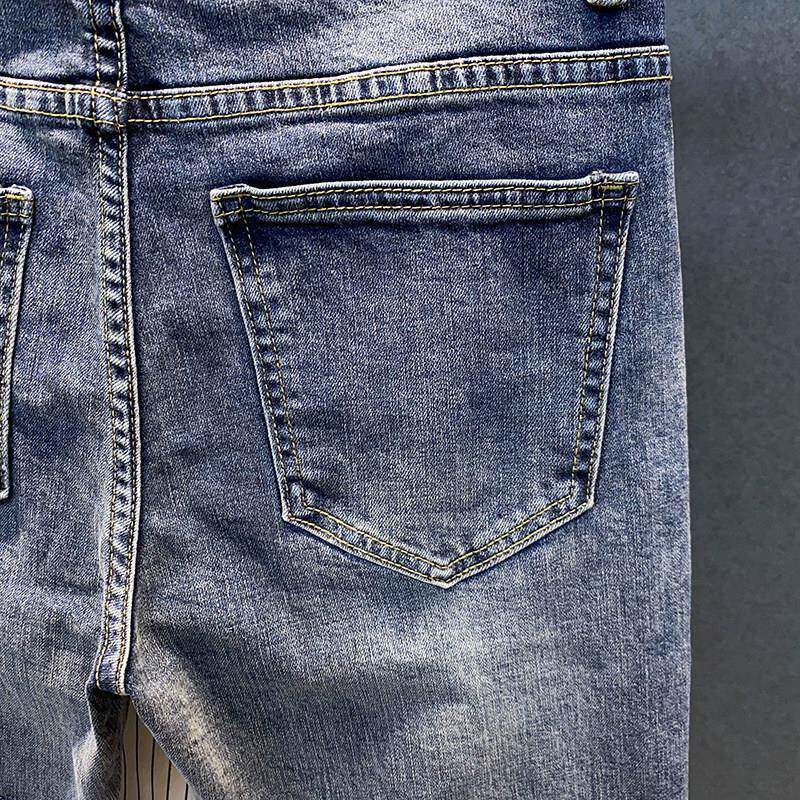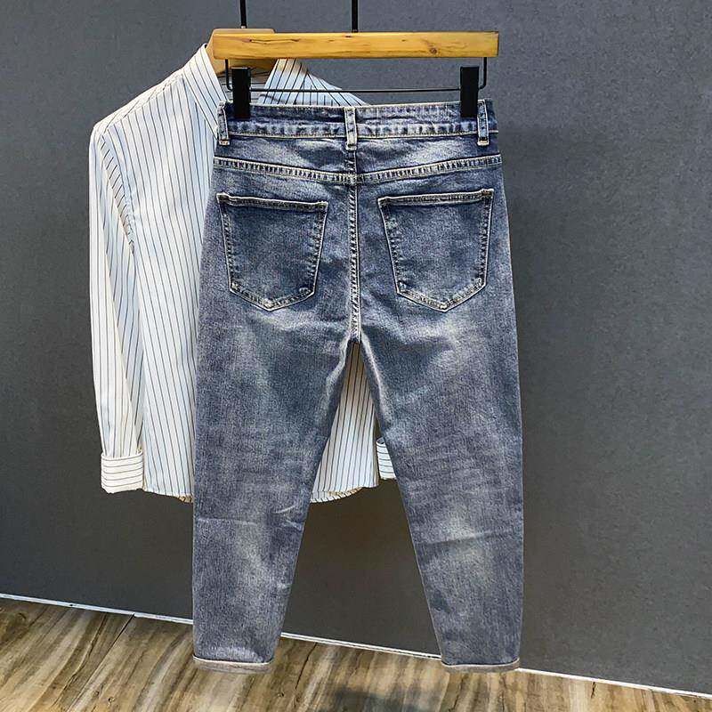 春夏款重洗水蓝九分牛仔裤男潮牌弹力修身小脚9分裤子韩版东0226d