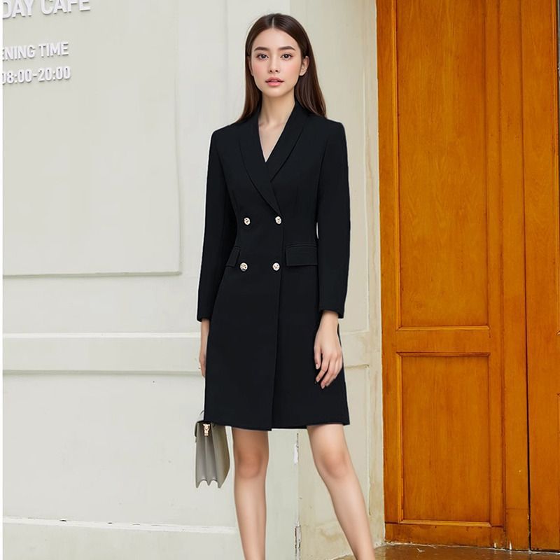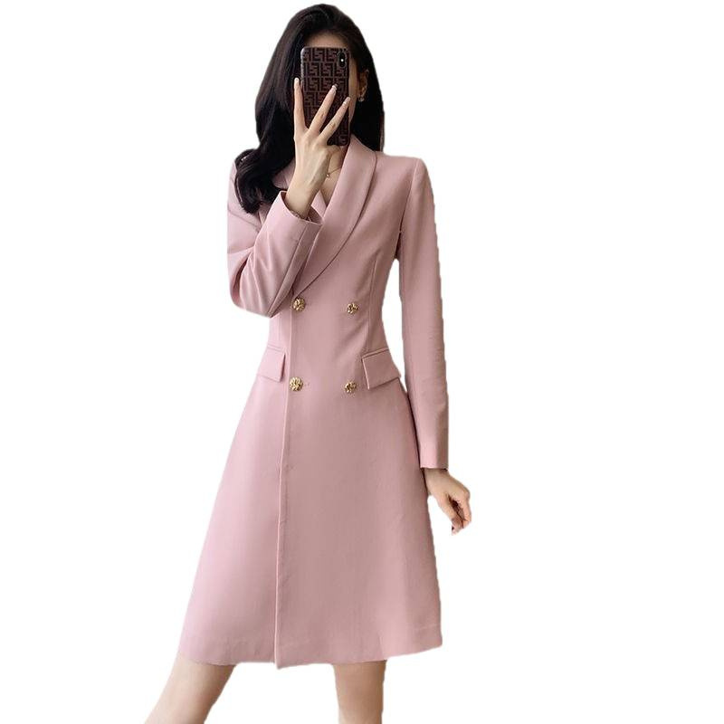 秋天印花色裙职业连衣裙老师幼师教师美容宽松工装上班加肥加大版