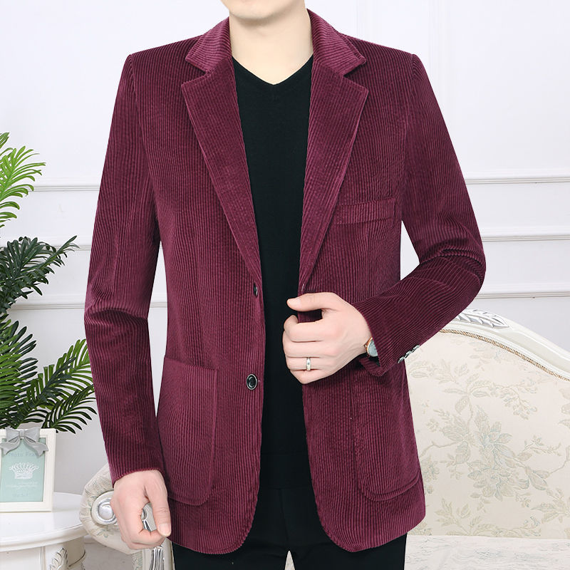 2025中年男士全棉灯芯绒西装中老年人男装宽松商务休闲西服爸爸装