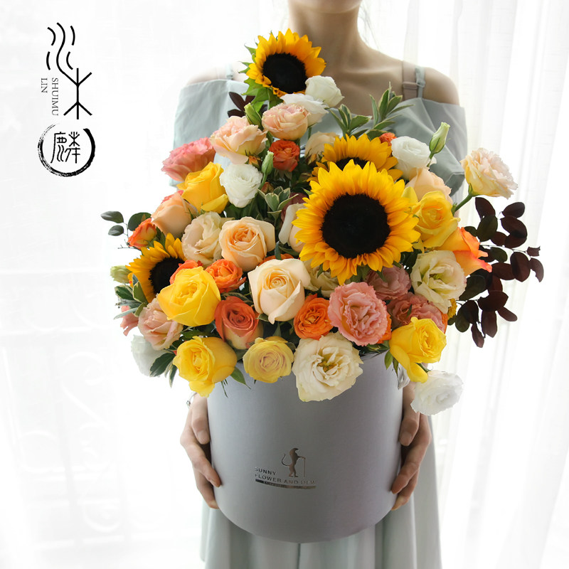 鲜花礼盒速递同城送花订花抱抱桶桌花花篮花盒花束盒成都花店生日