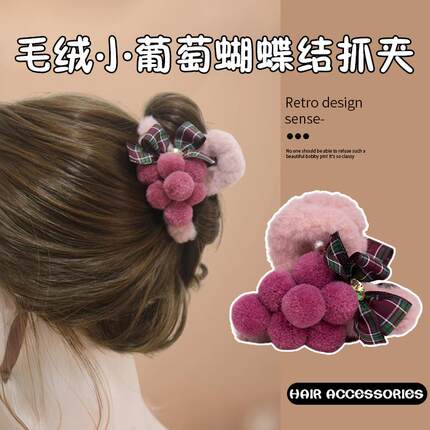 毛绒可爱发饰小葡萄结秋冬新品毛茸茸提子抓夹时尚简约百搭头饰女