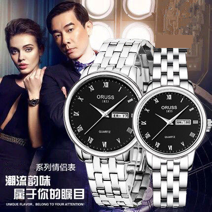 情侣精钢韩版时尚风机械防水腕表