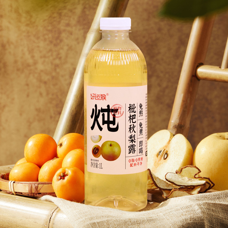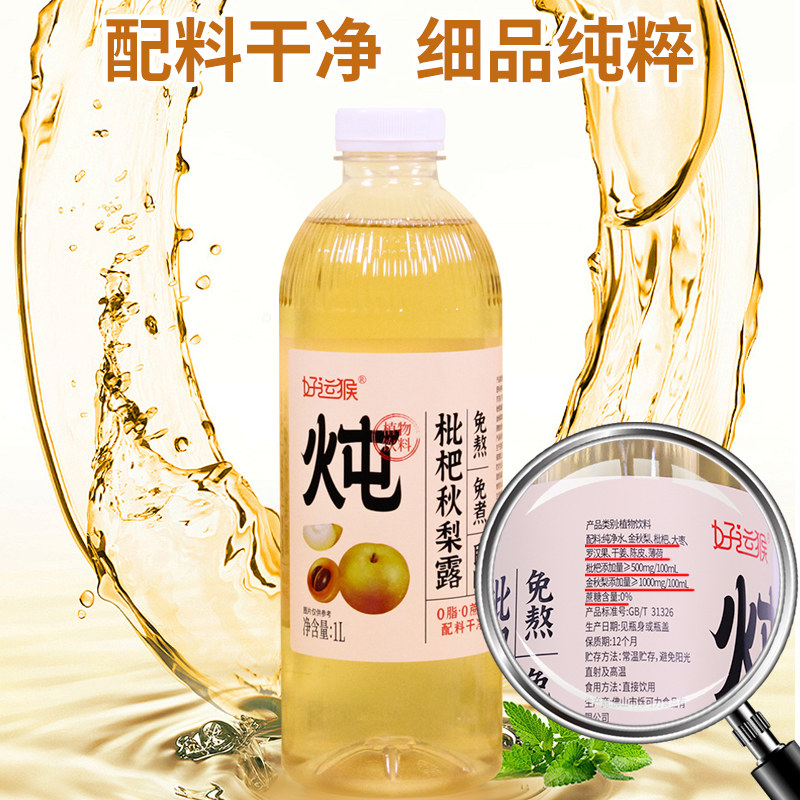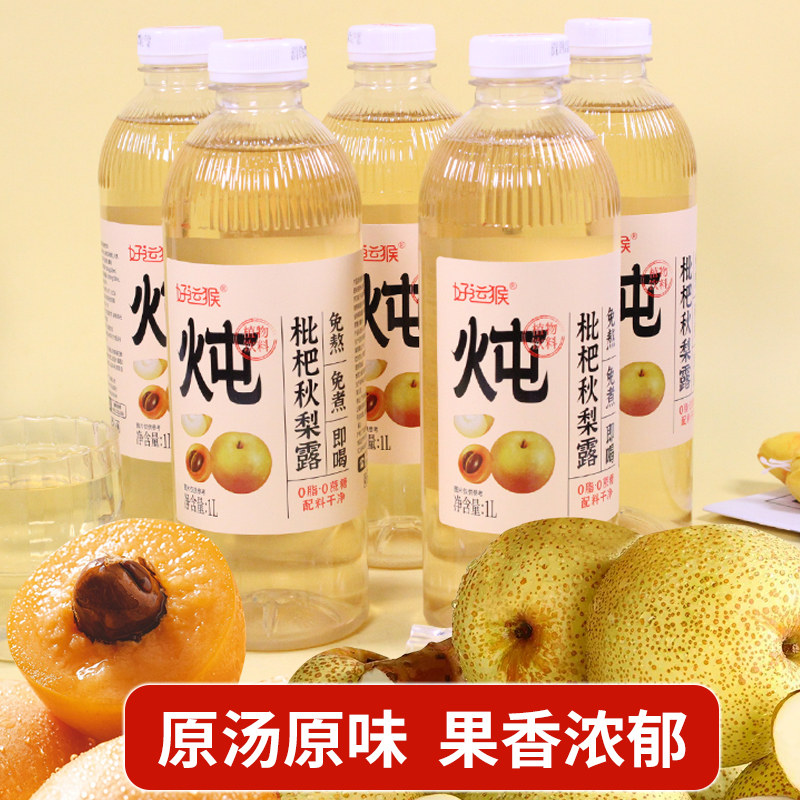 1L*8瓶好运猴枇杷秋梨露果汁中式养生水饮料儿童孕妇饮品配料干净