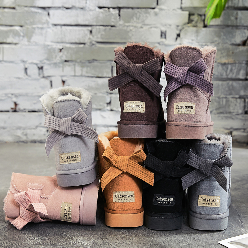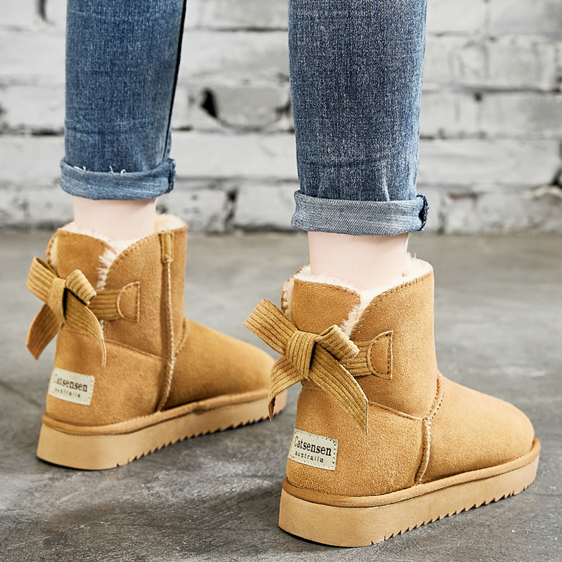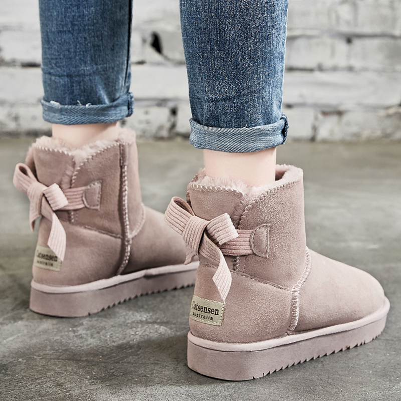 靴子2023新款女真皮雪地靴短筒冬季加绒保暖短靴学生防滑面包棉鞋