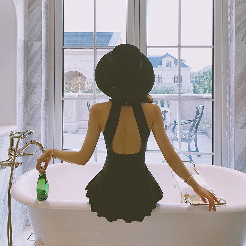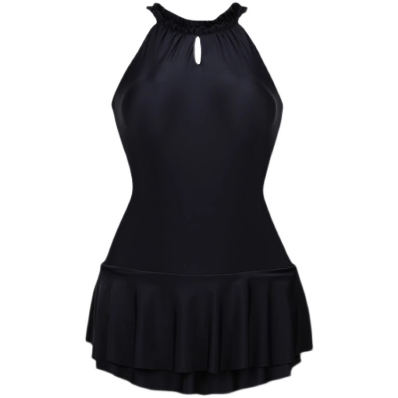 小众黑色泳衣女连体裙式保守显瘦遮肚小胸平角裤漏背修身大码温泉