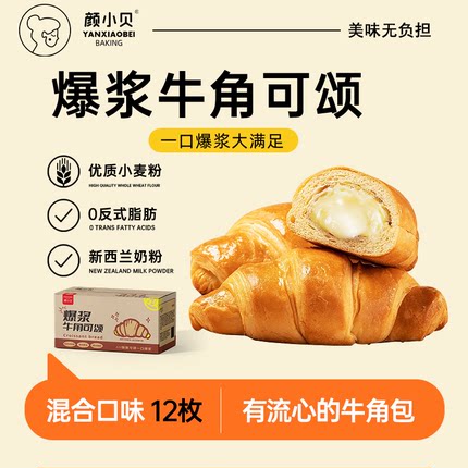 颜小贝爆浆可颂牛角包法式夹心软面包营养早餐代餐无脱氢乙酸钠