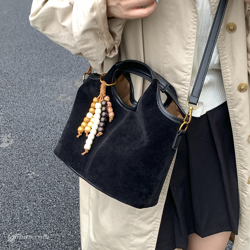 复古磨砂小众麂皮绒包包女2025新款秋季百搭斜挎包时尚手提水桶包