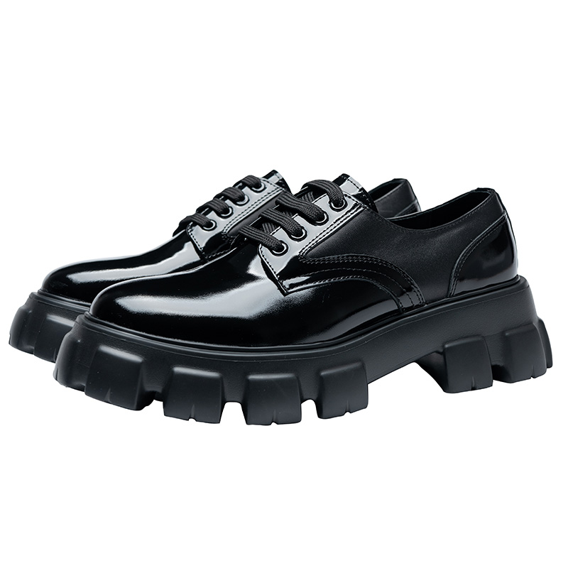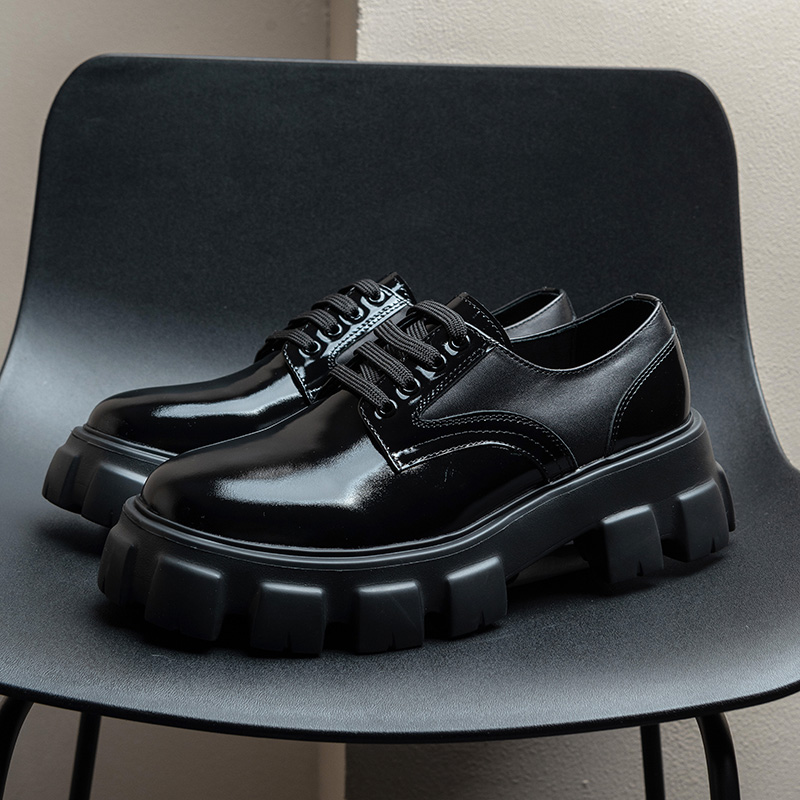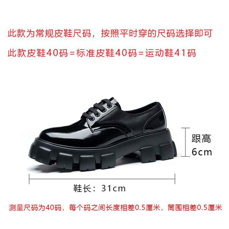 欧洲站6cm增高亮皮德比厚底鞋男暗黑真皮系带大圆头皮鞋男潮休闲