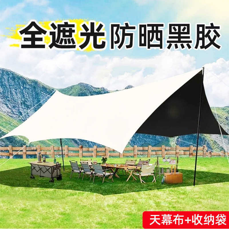 户外黑胶天幕布露营折叠帐篷防晒防风野餐侧边遮阳棚野炊遮阳幕布