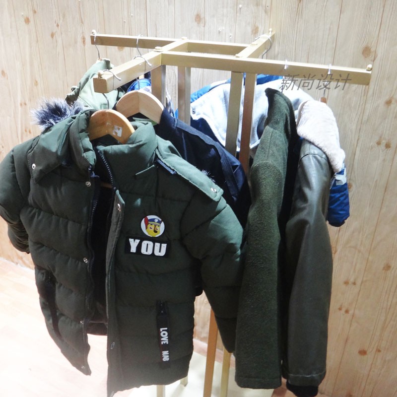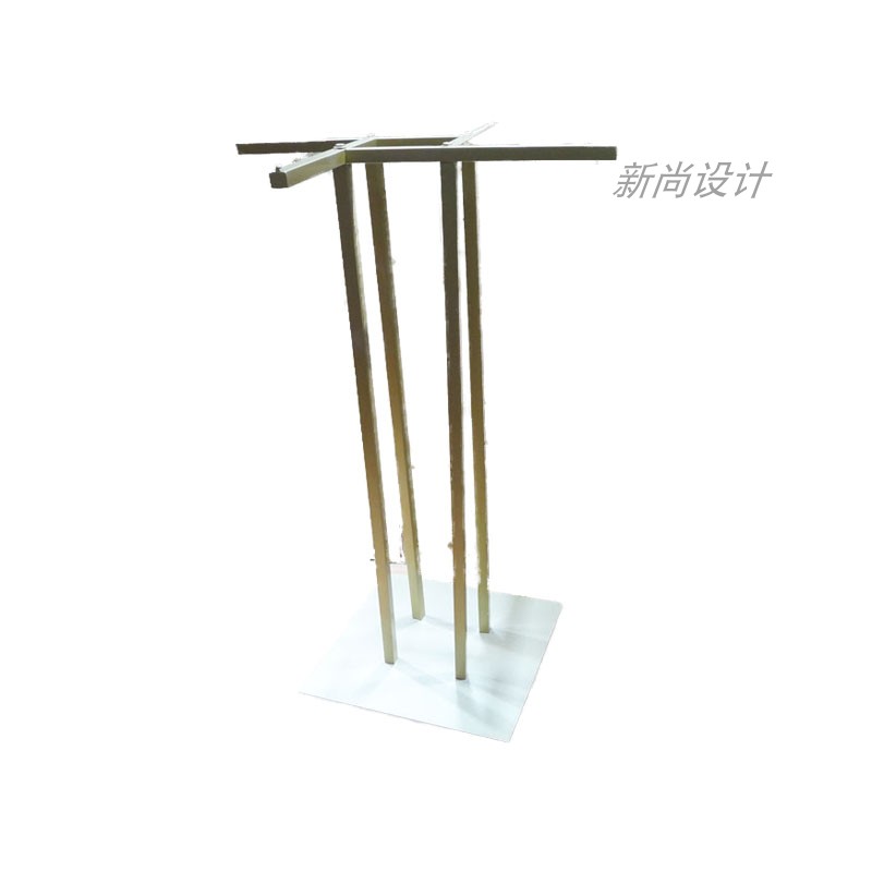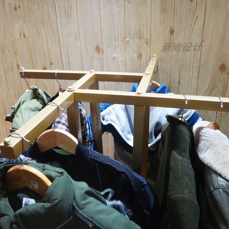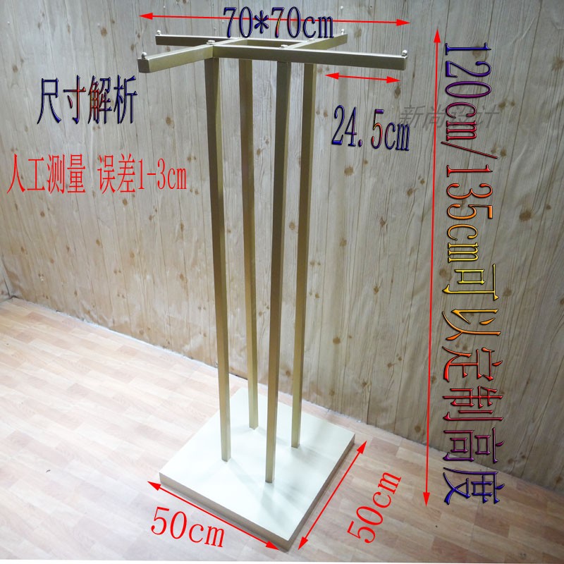 服装店中岛金色四臂架中央摆放四面挂衣架落地商场四方货架展示架