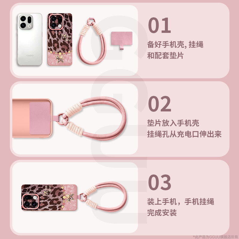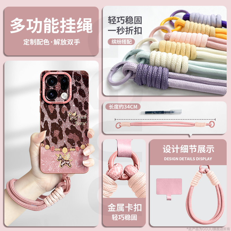 GGUU适用findx9手机壳x9pro新款x9保护套find腕带豹纹findx8挂绳ultra女oppo硅胶findx7全包findx6外pro高端