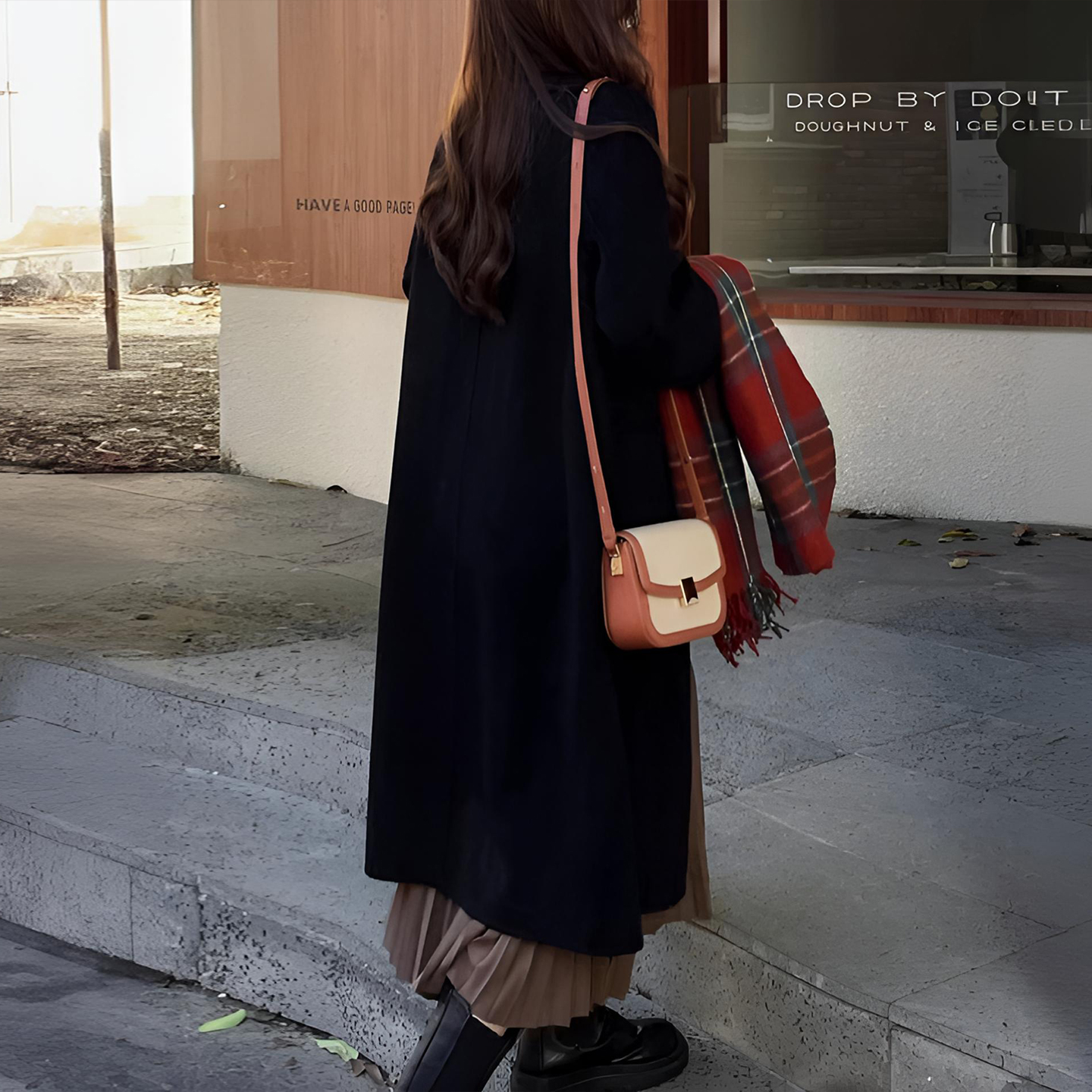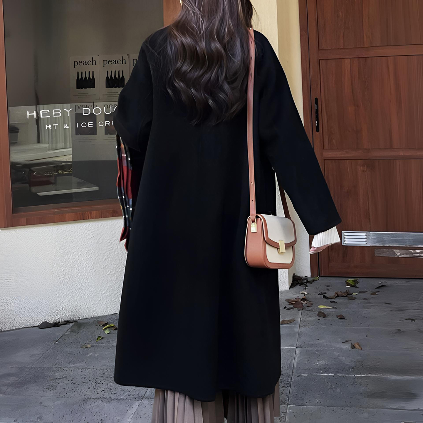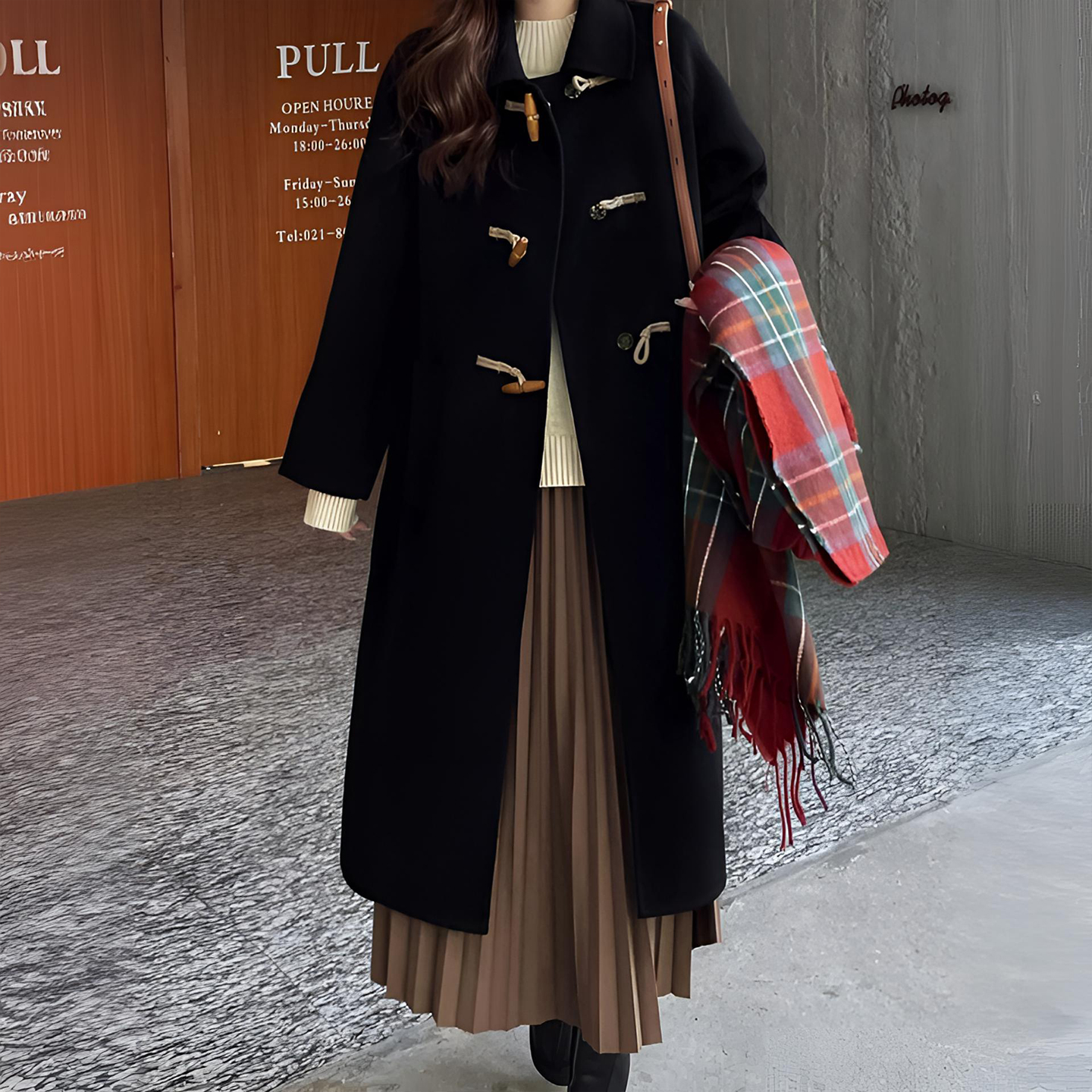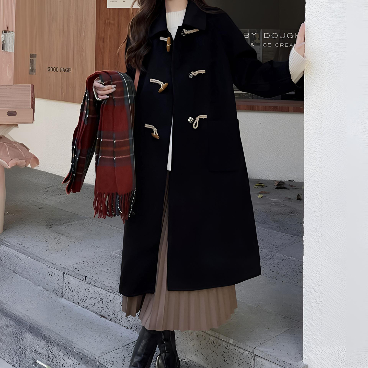大码女装胖mm气质百搭设计感毛呢外套女秋冬黑色牛角扣高级感大衣