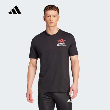 adidas阿迪达斯足球风半截袖2025夏新款棉质舒适男短袖T恤 JD8216
