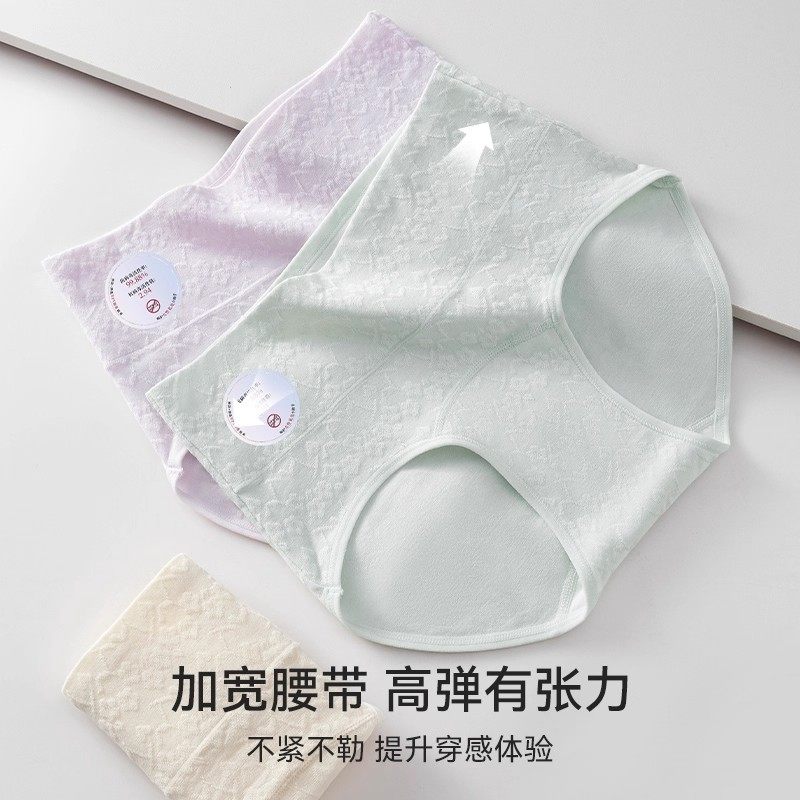 猫人内裤女士抗HPV病毒10A纯棉抑菌加长裆高腰提花宽松大码三角裤