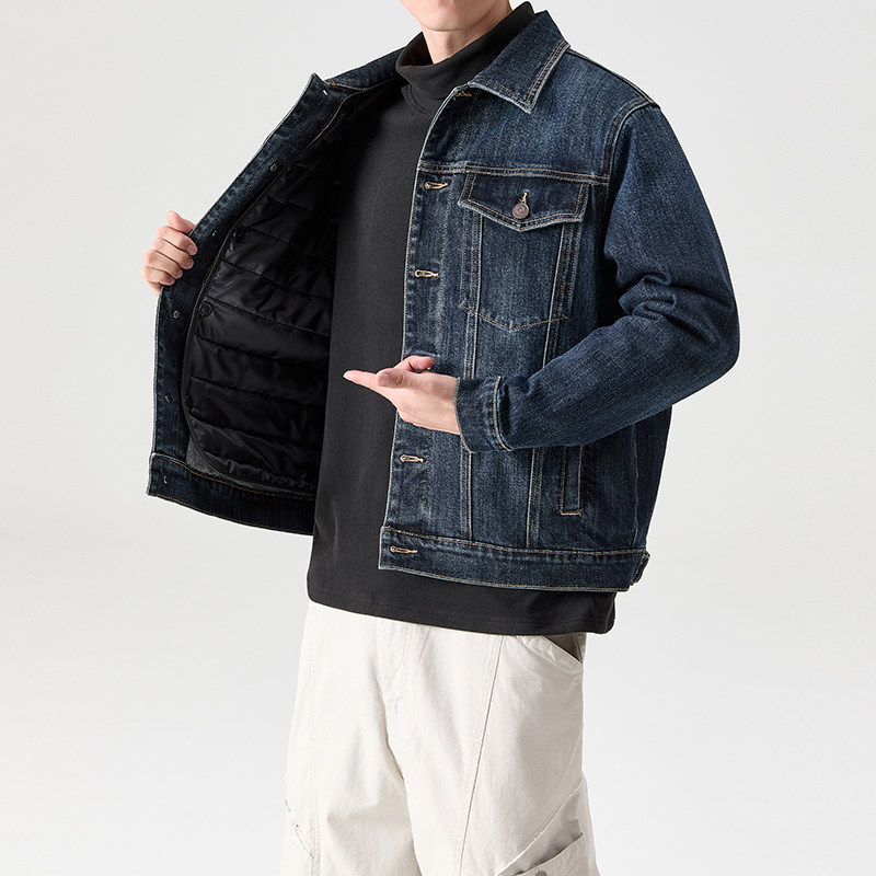 高端潮牌复古可拆羽绒牛仔外套男款秋冬季加绒加厚保暖夹克上衣服