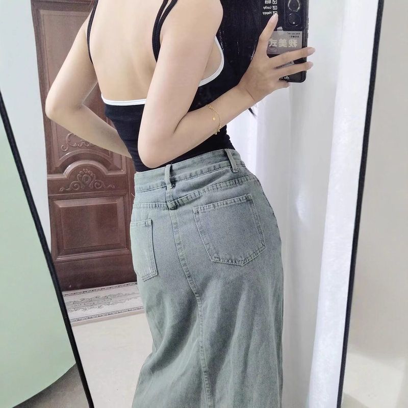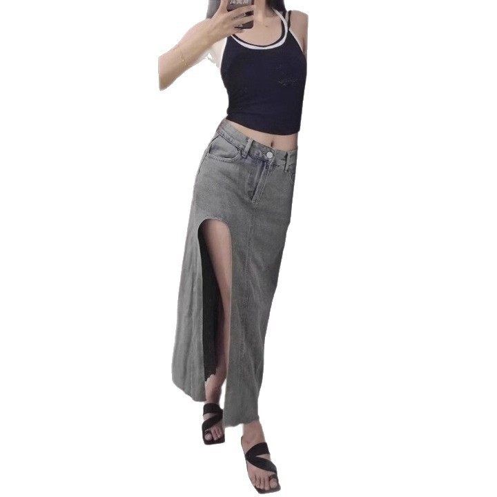 开叉侧设计感中长裙牛仔包臀辣妹韩版夏季女子气质2025新款半身裙
