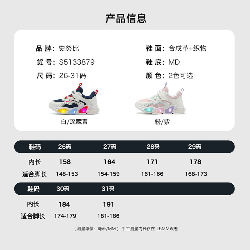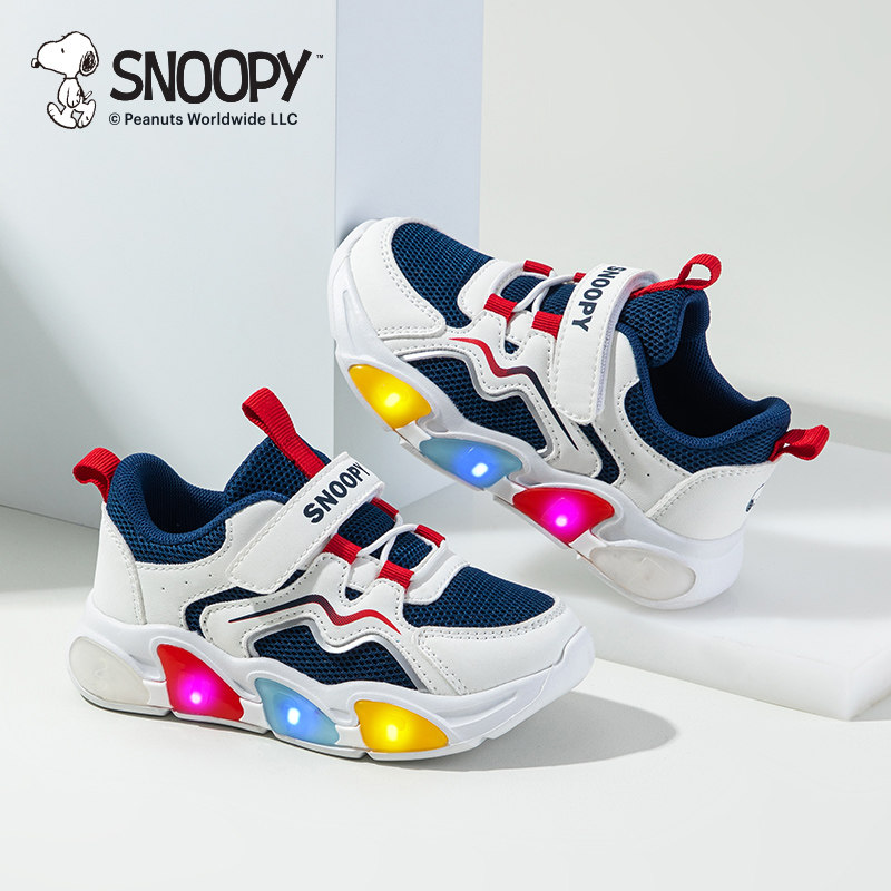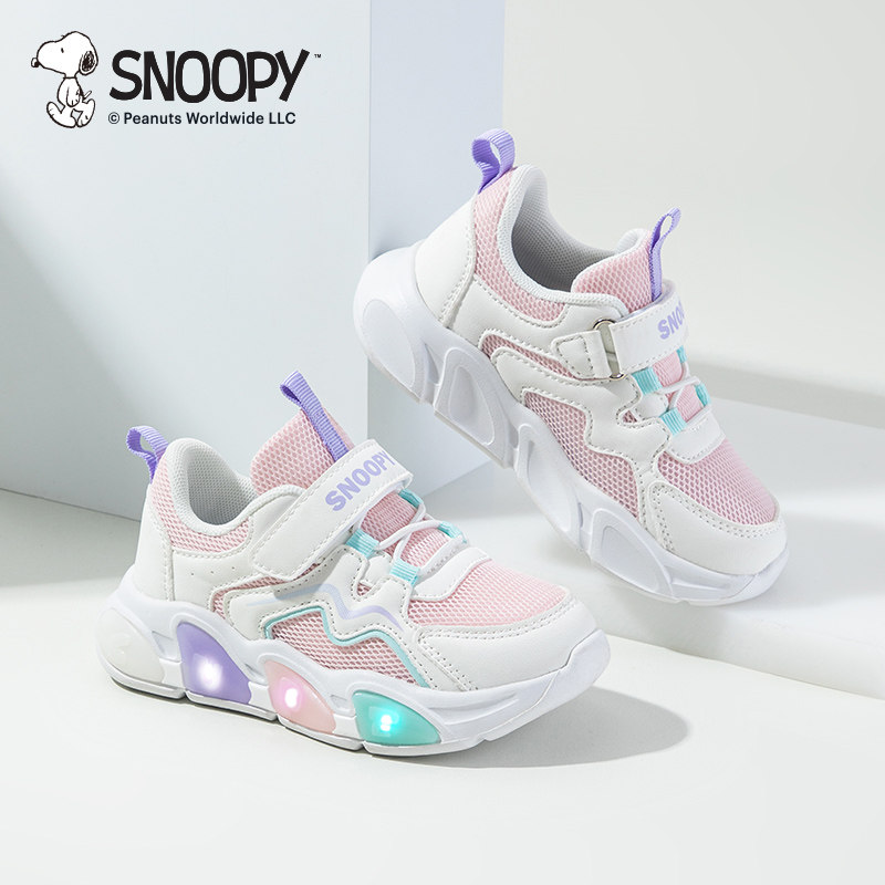 史努比童鞋女童发光鞋儿童运动鞋春秋季2025新款男童灯鞋网面透气