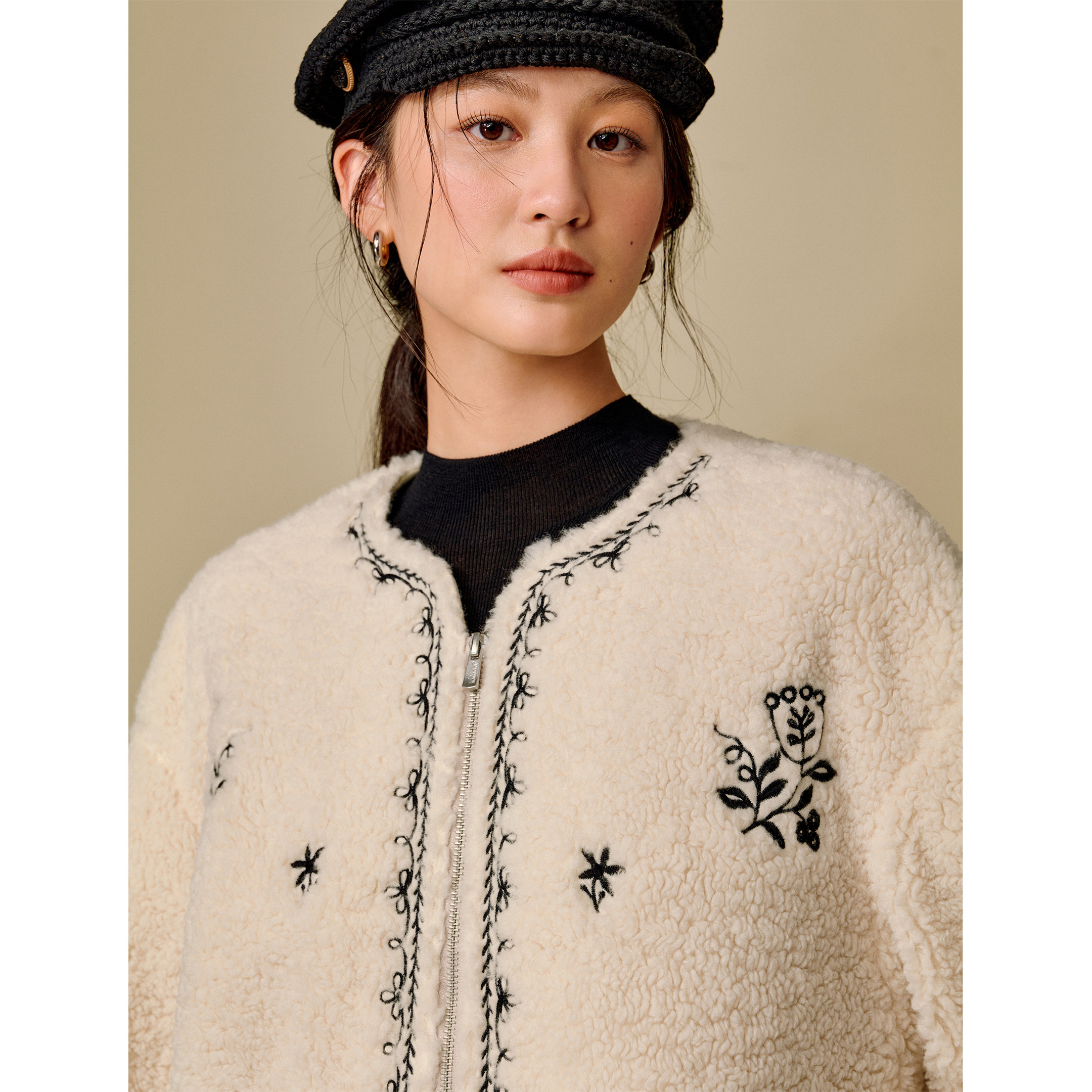茵曼游牧重工绣花羊羔绒外套2025冬季女装新款宽松摇粒绒保暖上衣