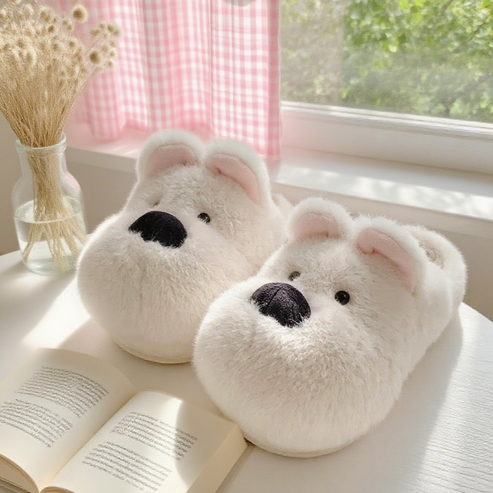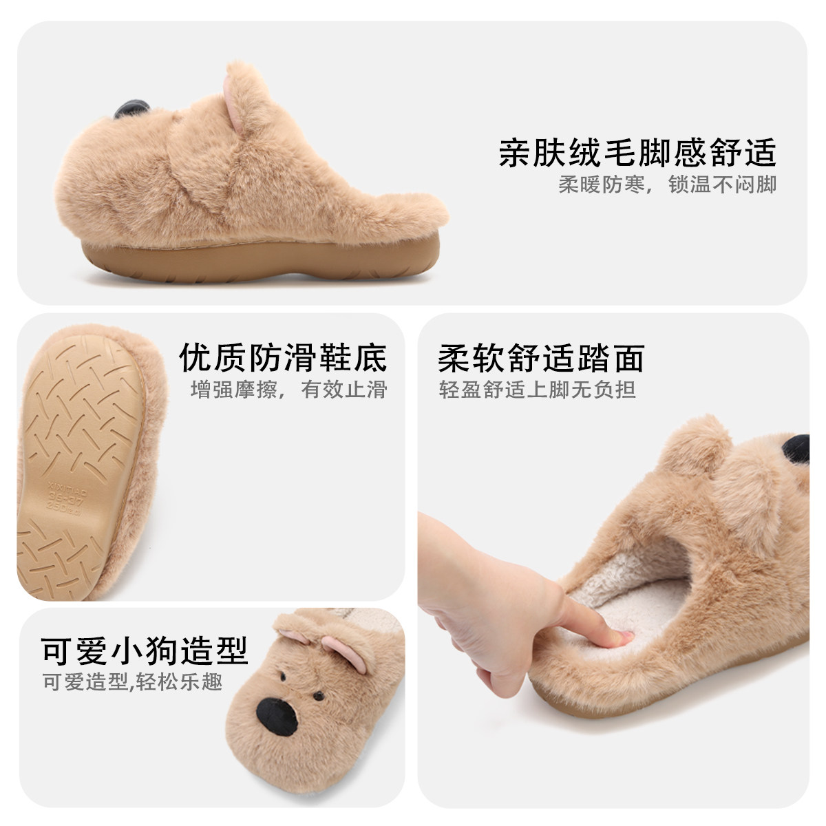 细细条 男女士可爱冬季家居毛毛鞋西高地小狗保暖防滑情侣棉拖鞋