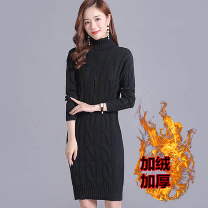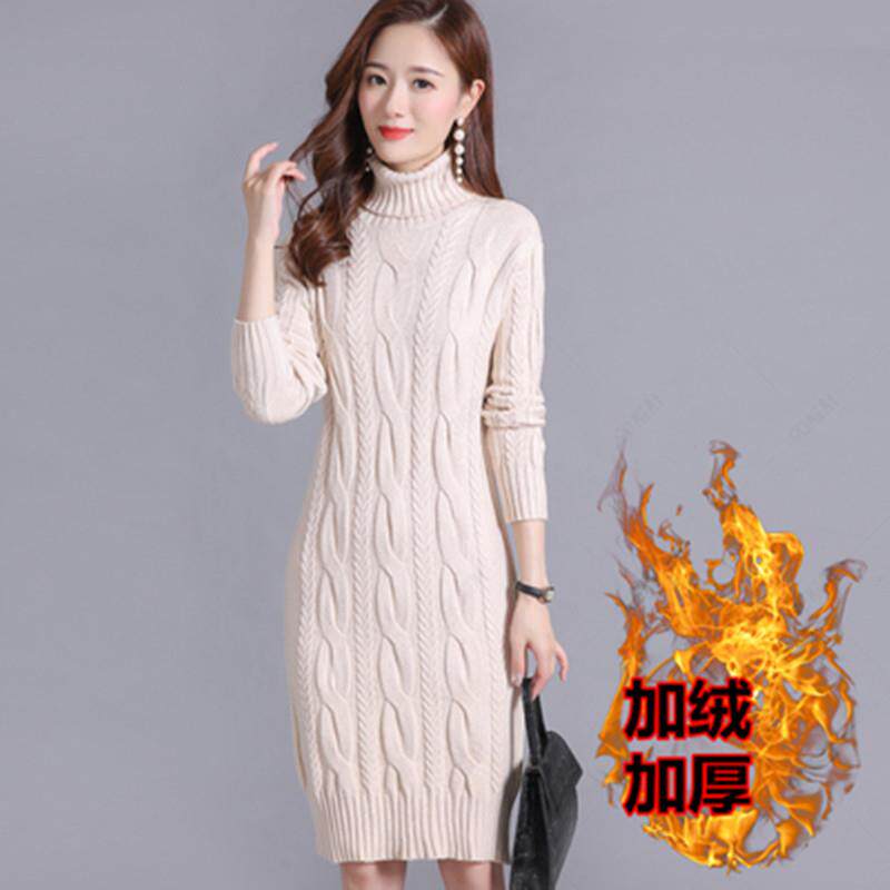 秋冬新款加绒加厚高领毛衣女宽松大码中长款针织衫小个过膝打底裙