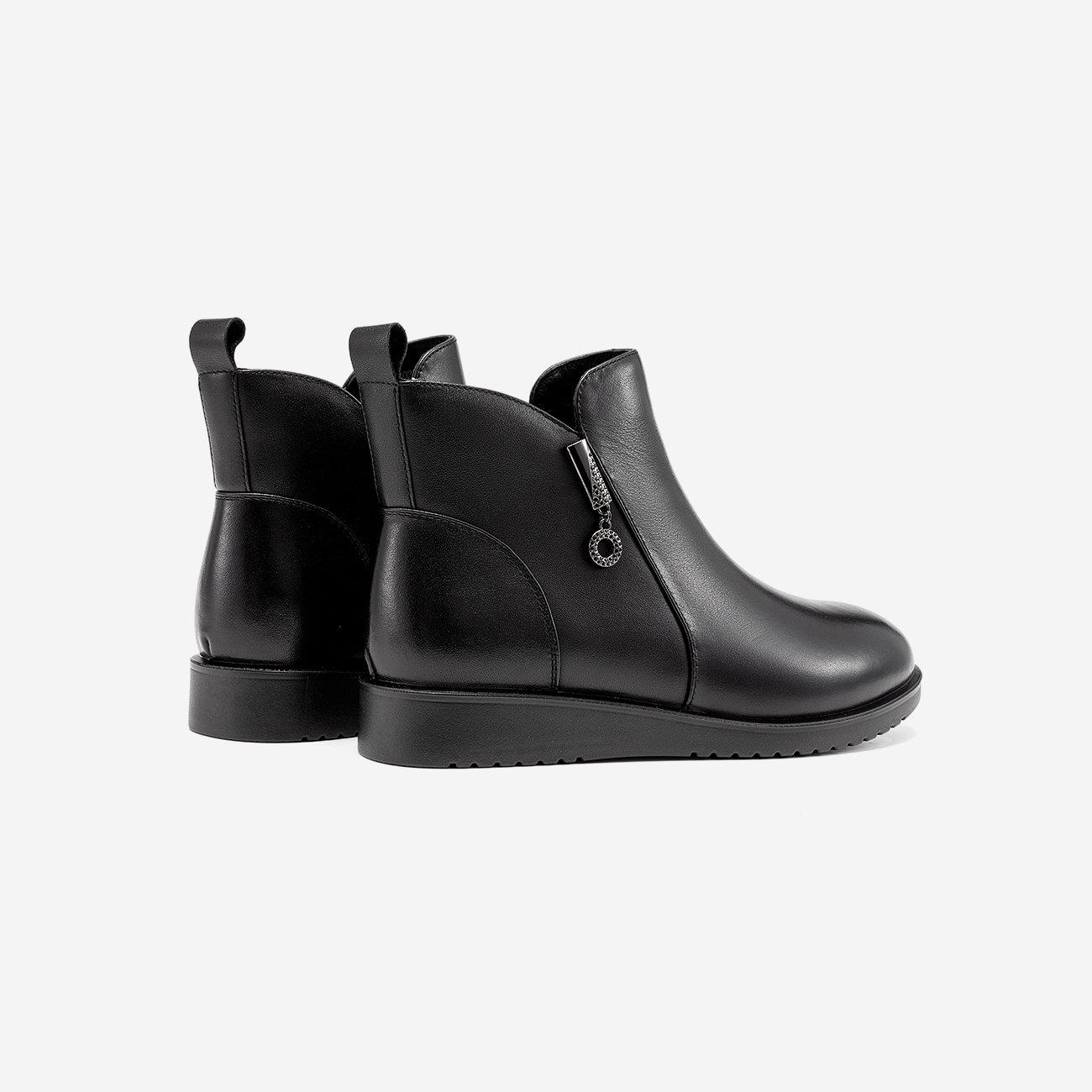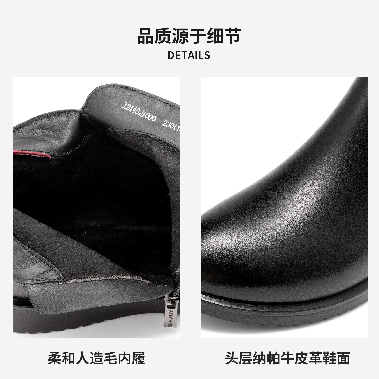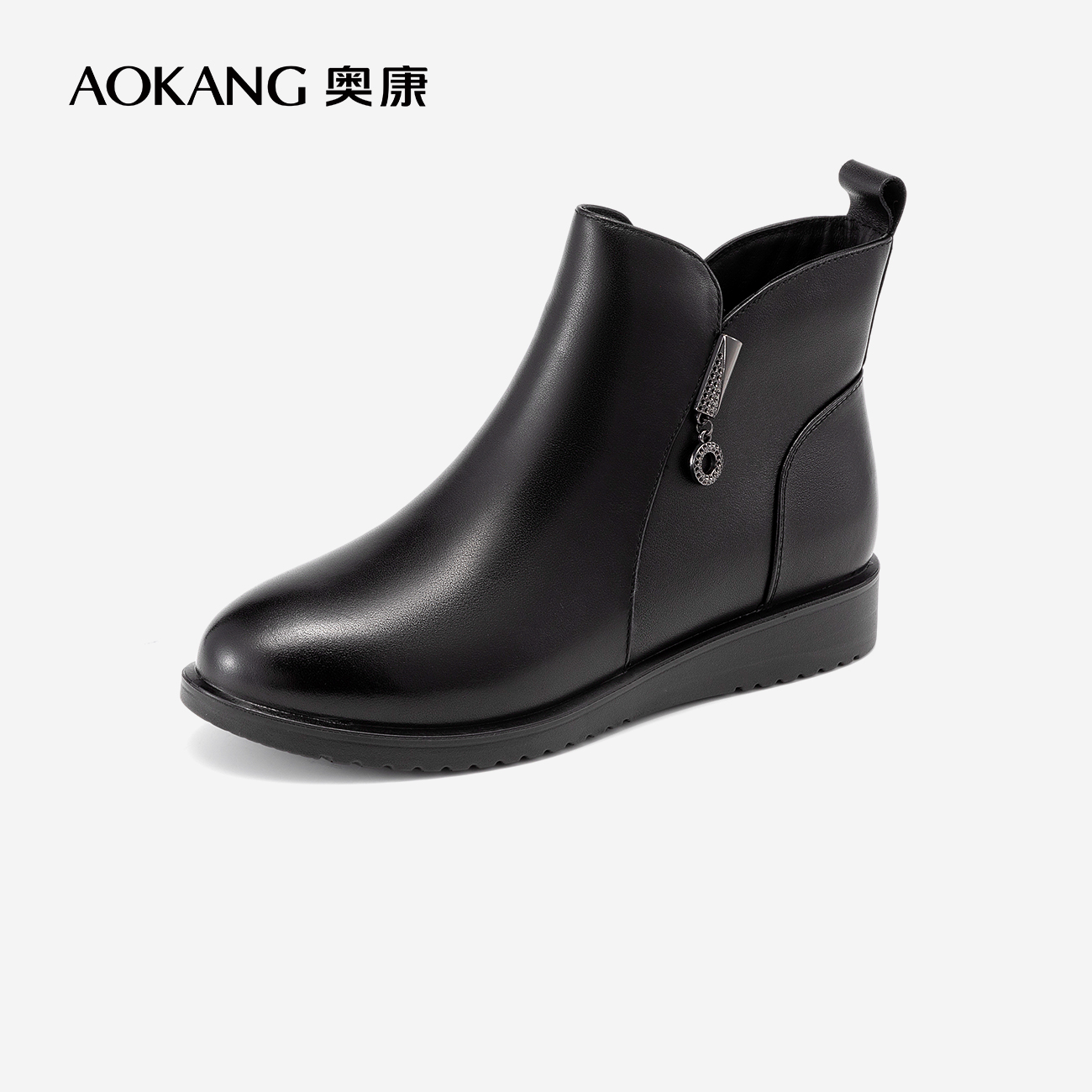 [真皮保暖妈妈鞋]奥康女鞋冬新款舒适防滑加绒时装中筒短靴