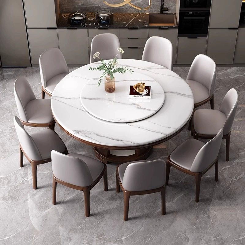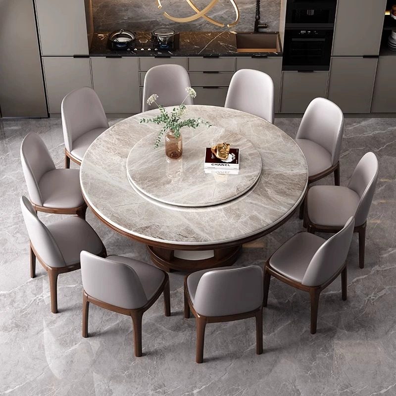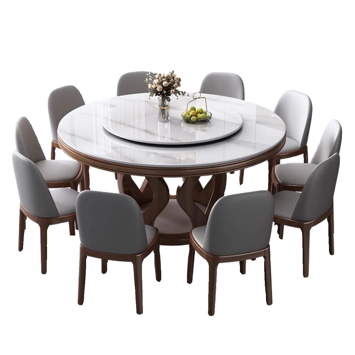 斯帝罗兰新中式岩板餐桌椅家用1.8米圆形大理石木框架10人吃饭酒