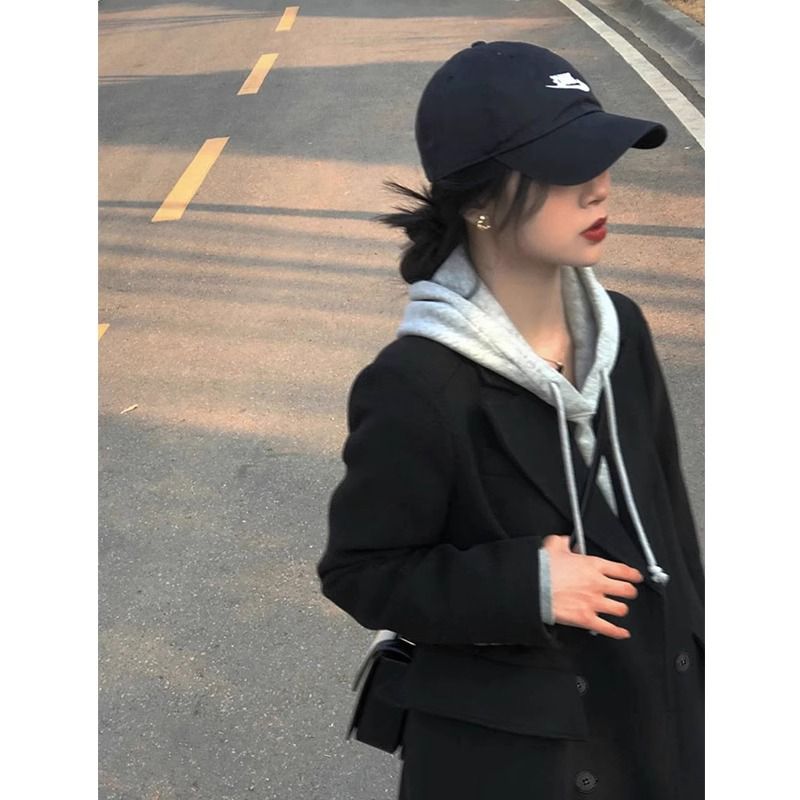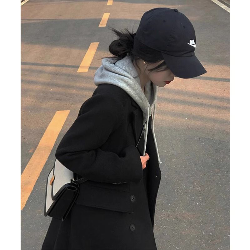 黑色毛呢外套女2025年秋