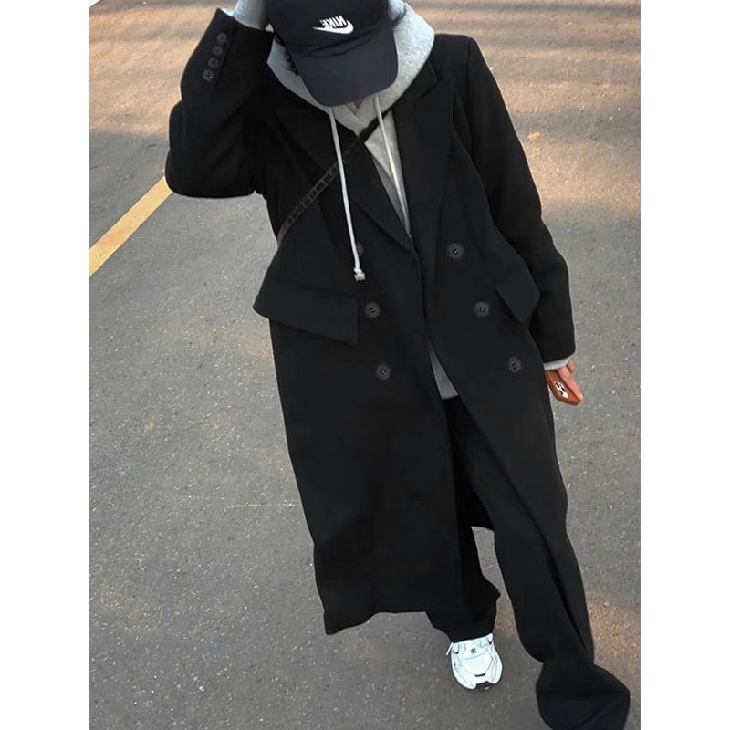 黑色毛呢外套女2025年秋冬新款韩版过膝赫本风呢子大衣中长款加厚