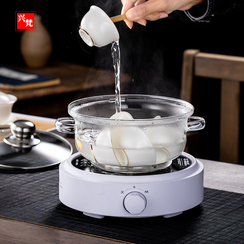 耐高温玻璃消毒锅茶洗带盖平底电磁炉可用消毒茶杯消毒锅杯洗器皿