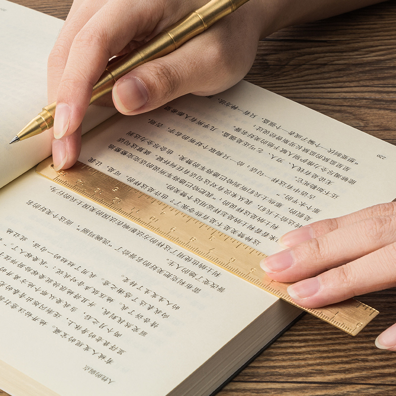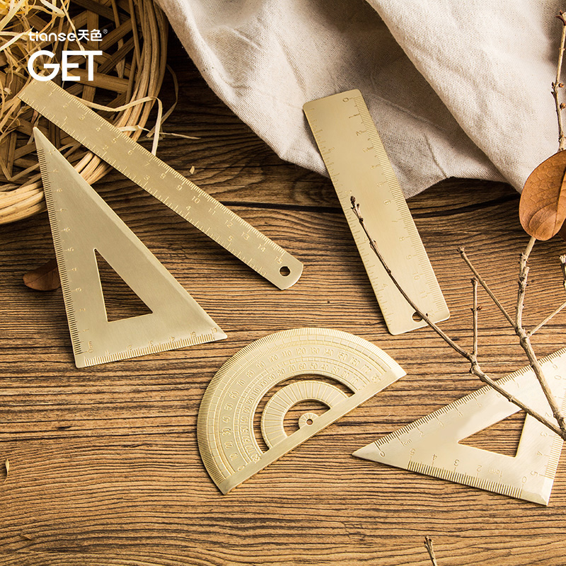 天色 复古黄铜金属尺子套装三角尺半圆量角器直尺私人定制礼品文具免费定制刻字公司logo生日礼物