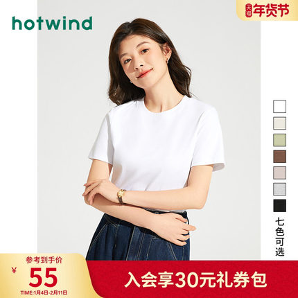 热风白色T恤2025年秋季女士简约基础白色短袖上衣纯色内搭打底衫