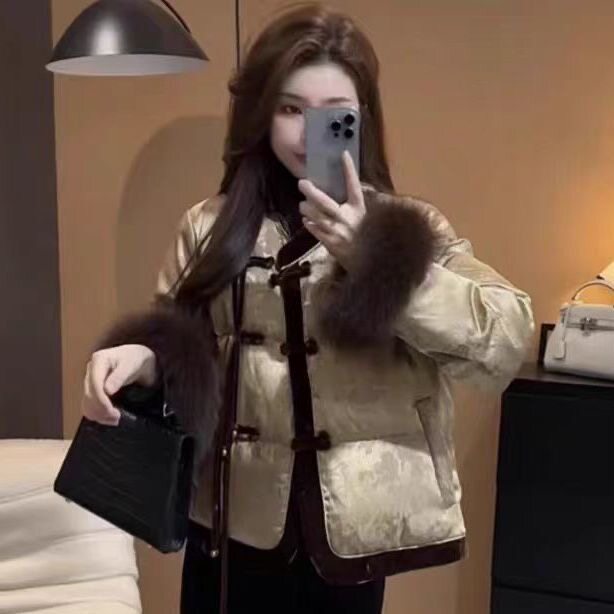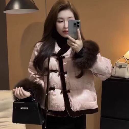 高端新中式国风盘扣棉服女款2025冬季加厚保暖红色棉衣外套拜年服