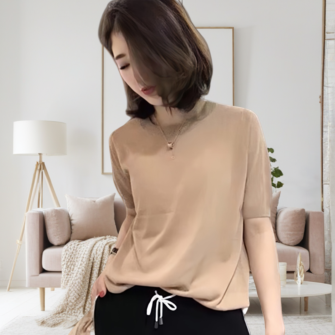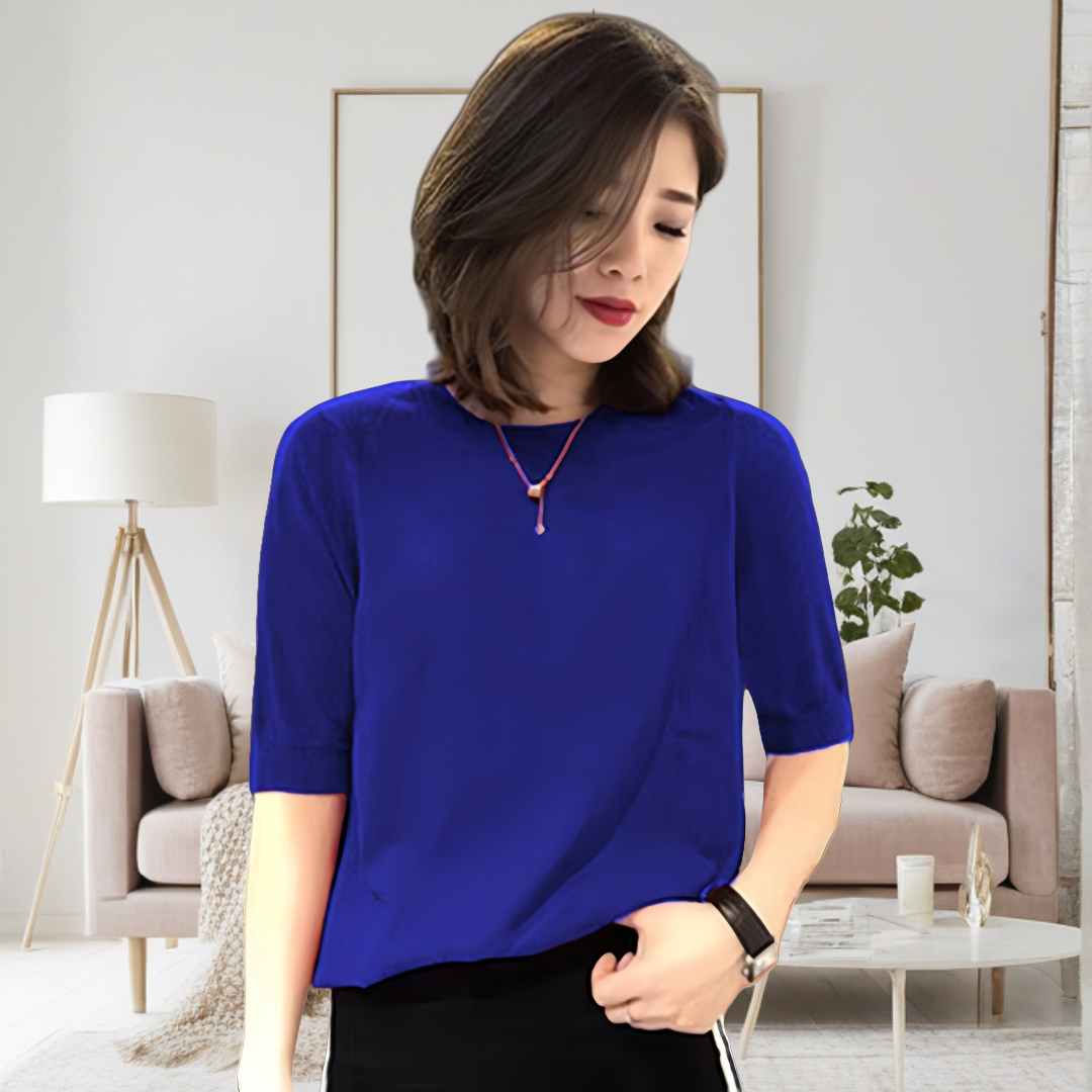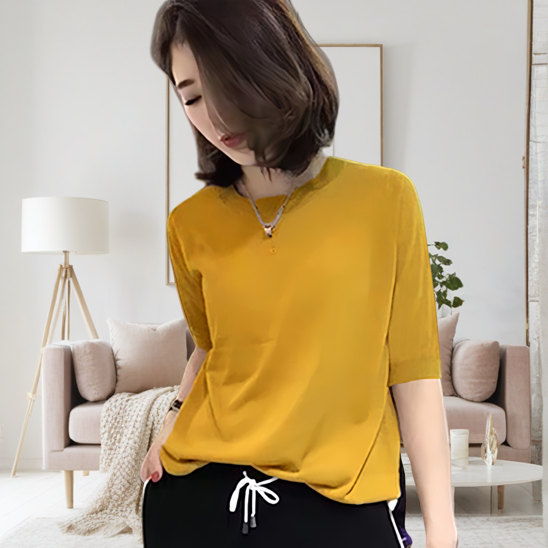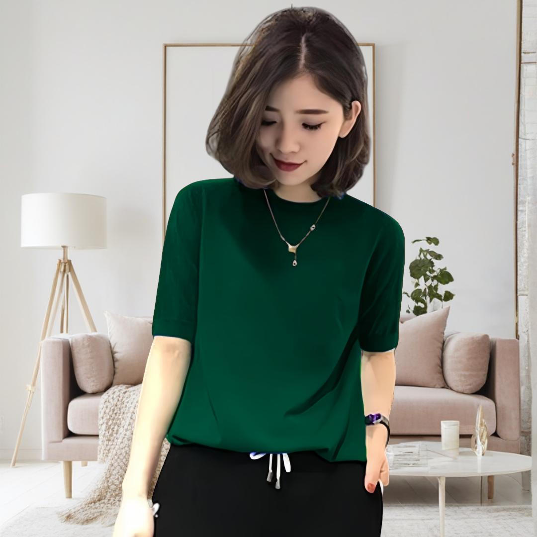 大码春秋季半高领五分袖针织衫女中袖毛衣打底衫套头半袖内搭上衣