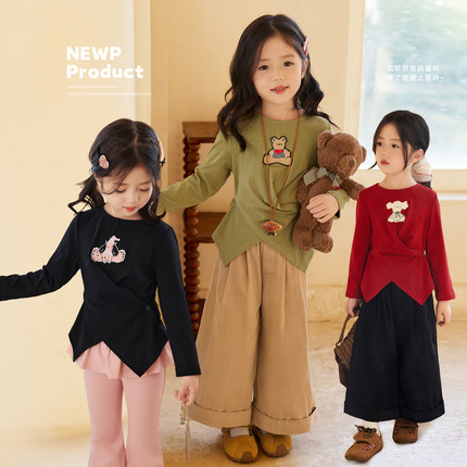 小O宝Okids童装 宝宝不规则长袖T恤女洋气2025新款女童亲子打底衫