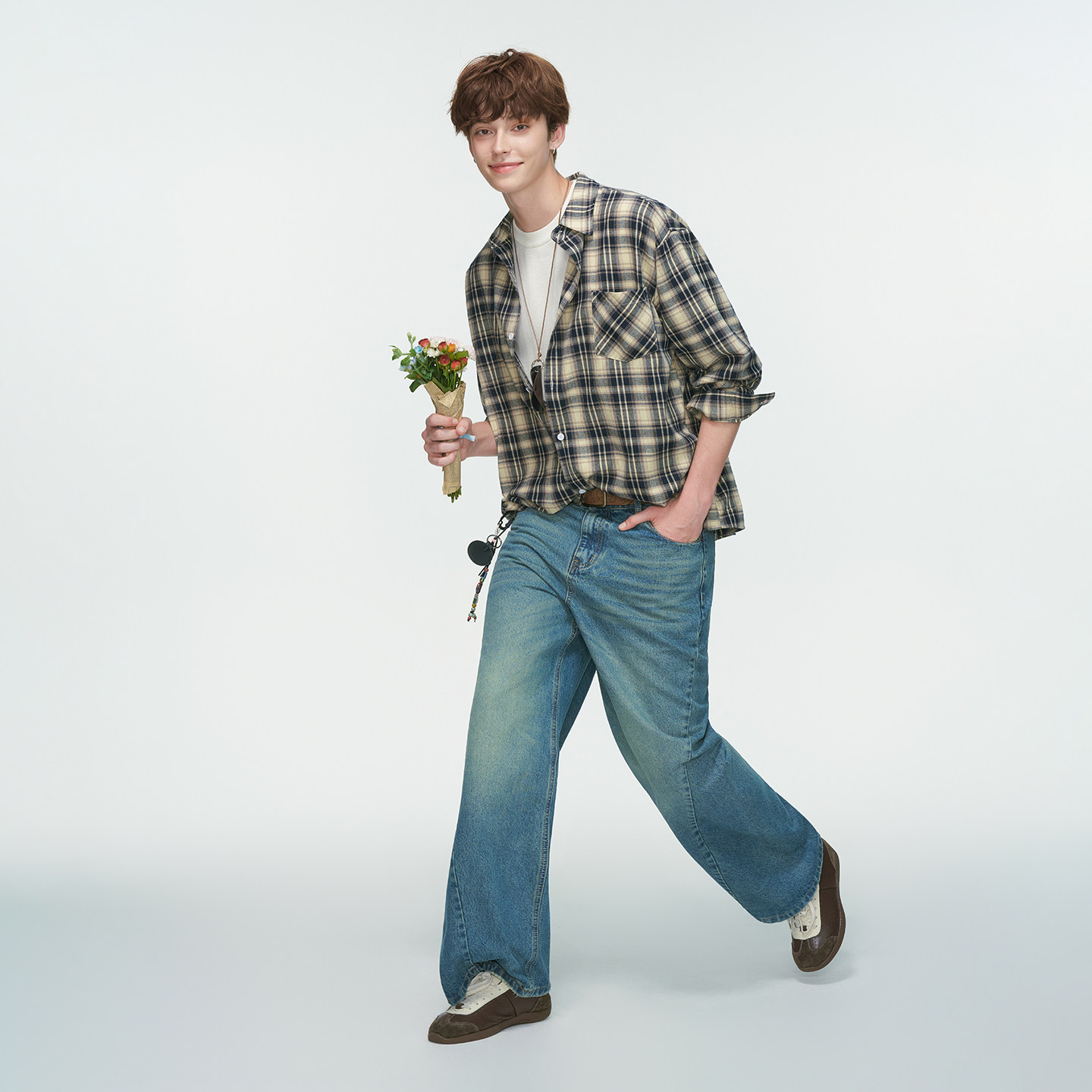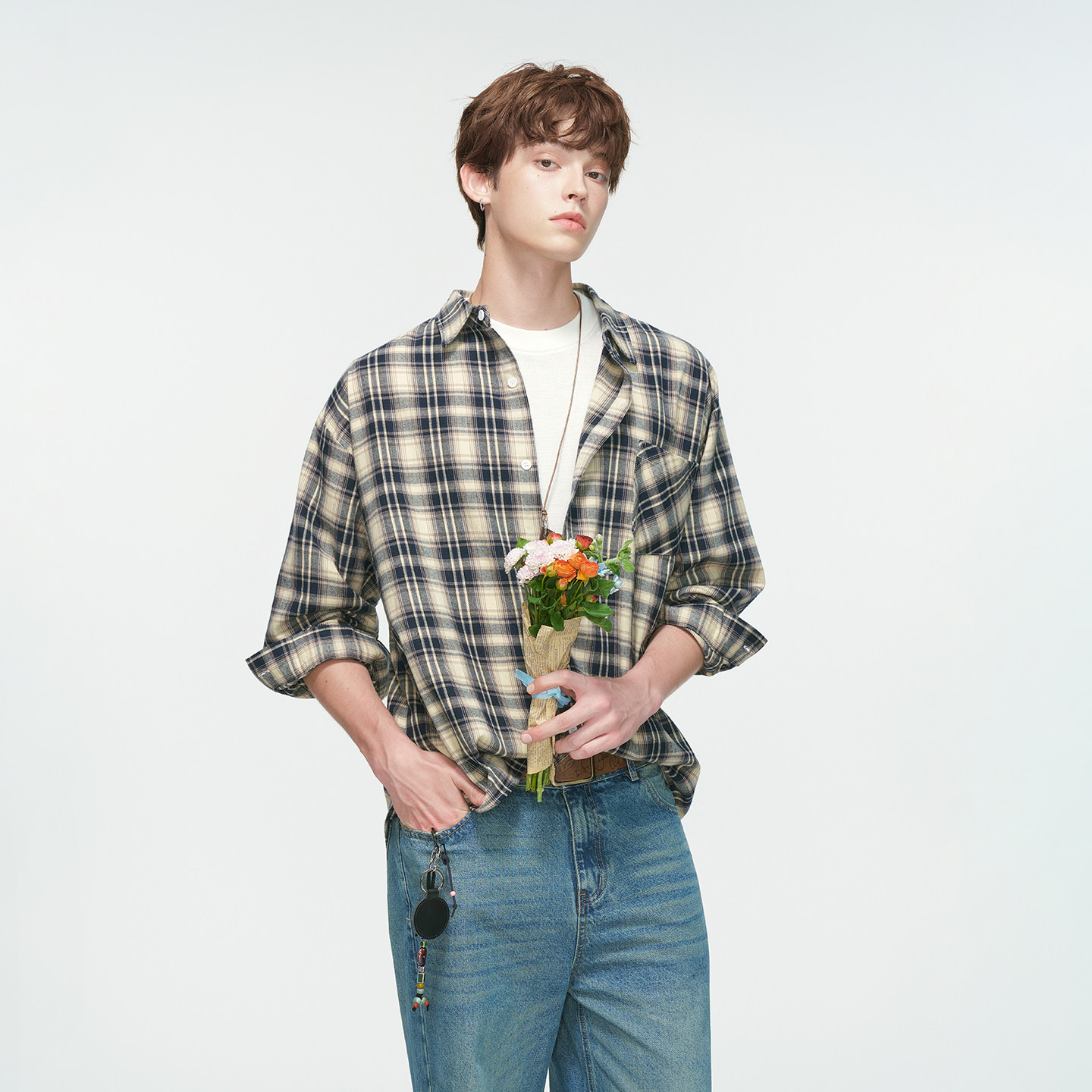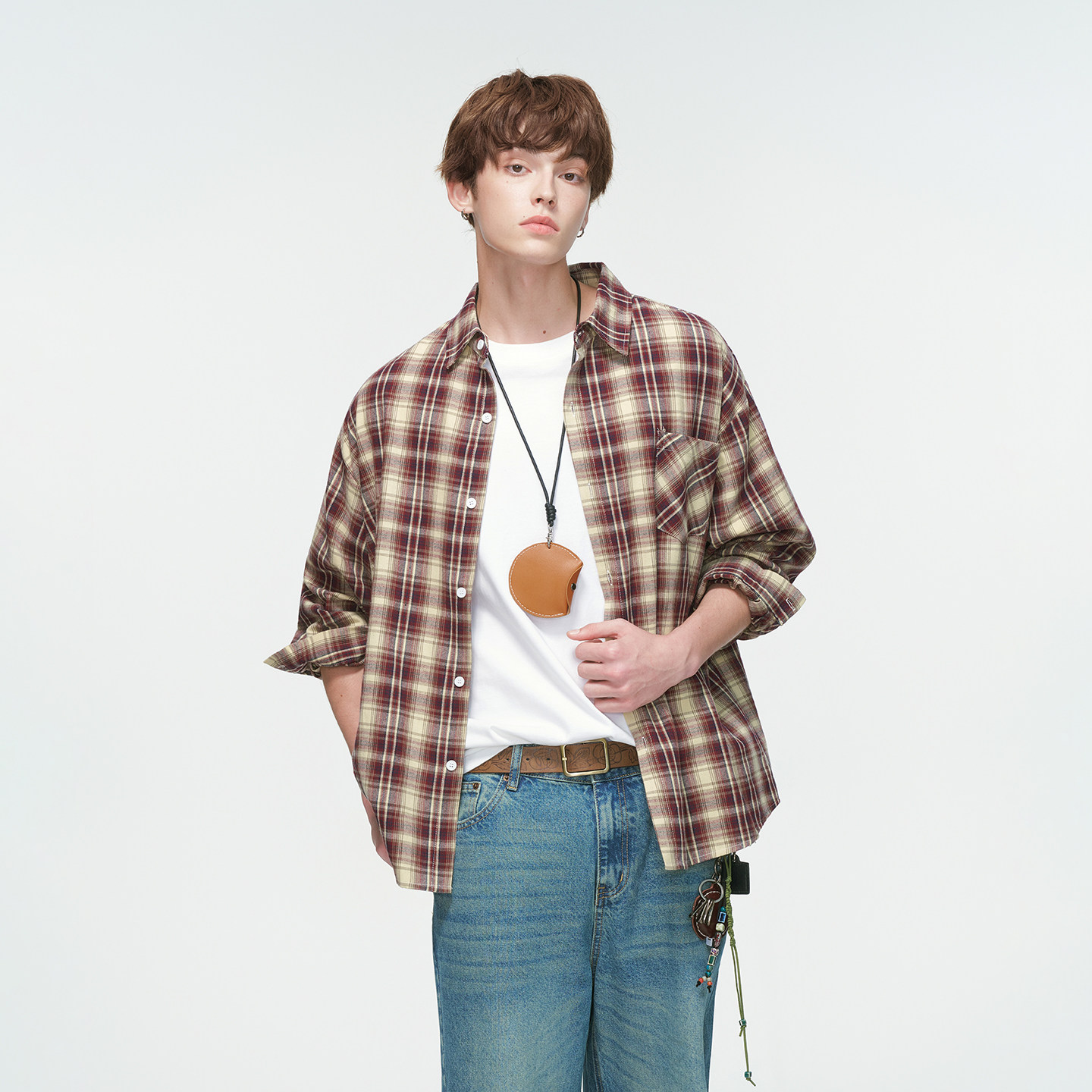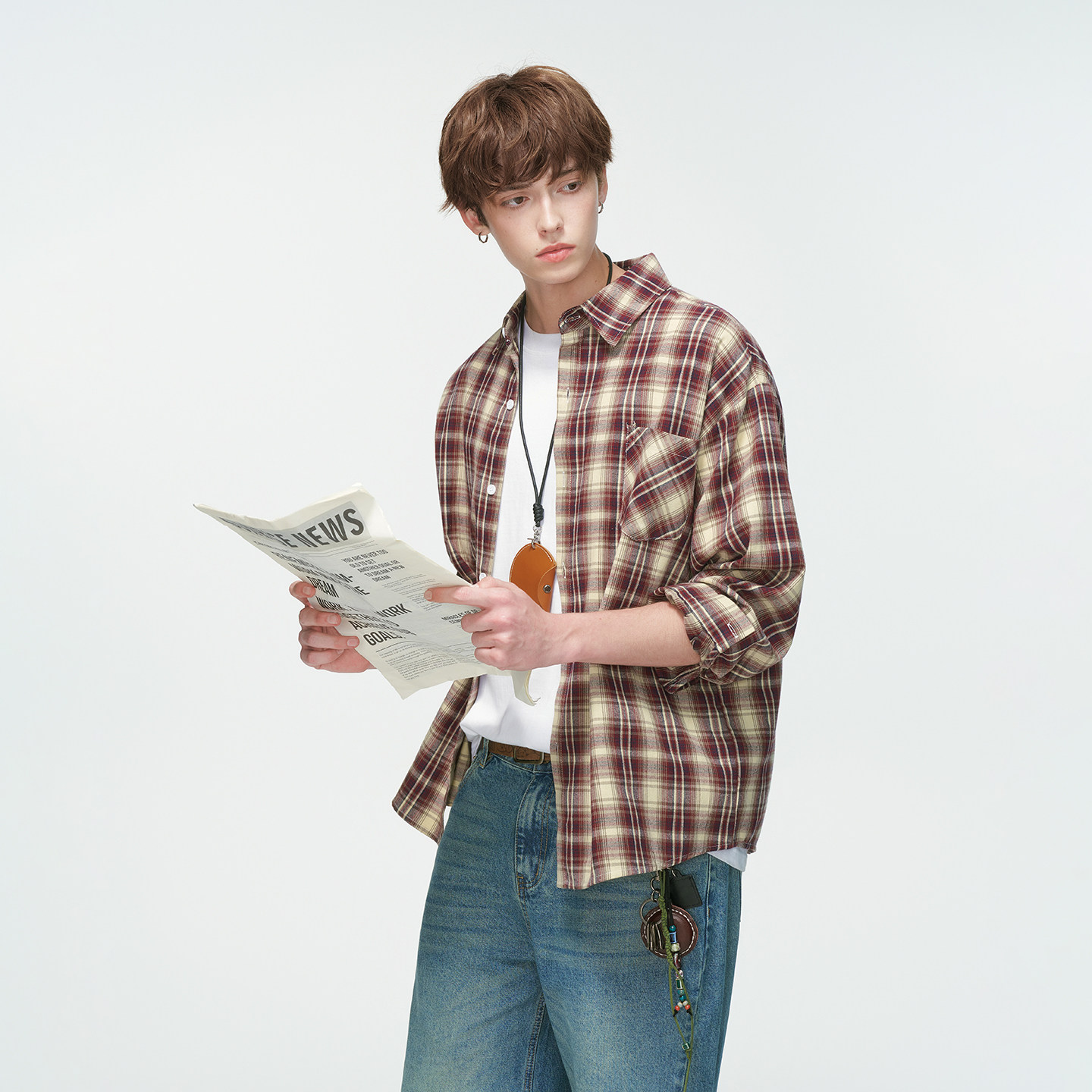 Dream made 美式复古格子长袖衬衫男春秋季潮牌休闲情侣衬衣外套