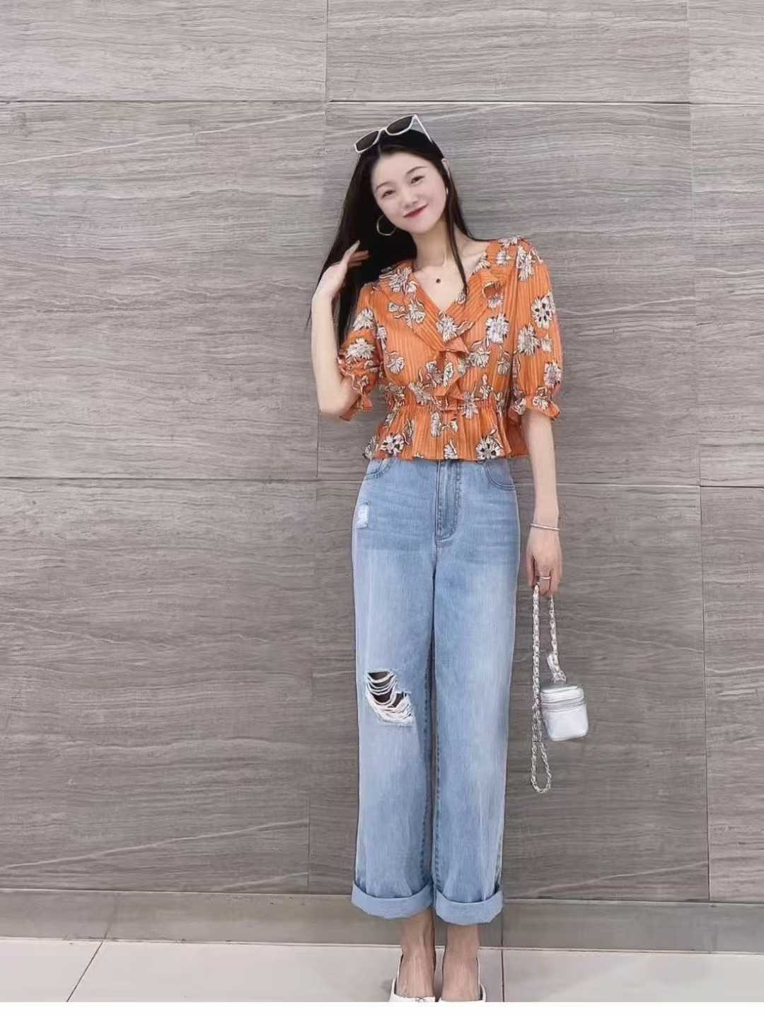 5300693专柜正品2025新款时尚百搭修身气质上衣短袖衬衫女小衫
