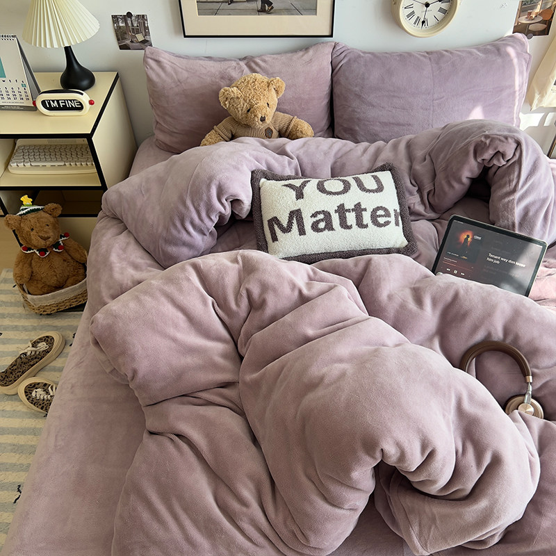 冬季牛奶绒床上四件套2025新款珊瑚绒被套床单加绒保暖床品三件套