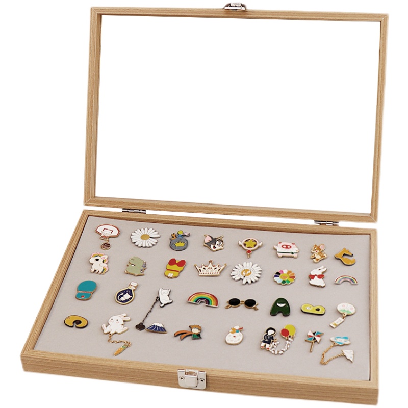 梨花木复古木纹徽章收纳盒胸针收藏整理框透明防尘奖章勋章收纳架