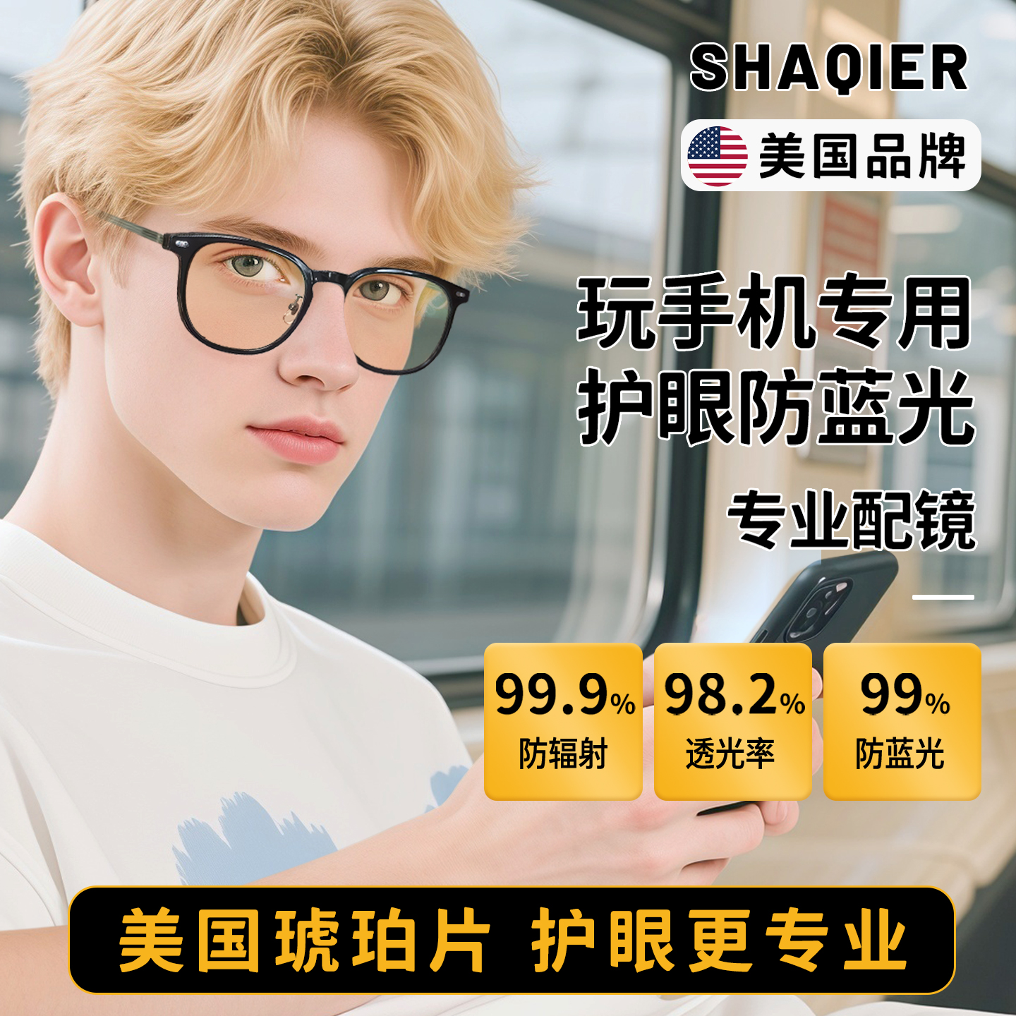 美国防辐射抗蓝光疲劳眼镜男变色自动感光看手机平光镜护目无度数