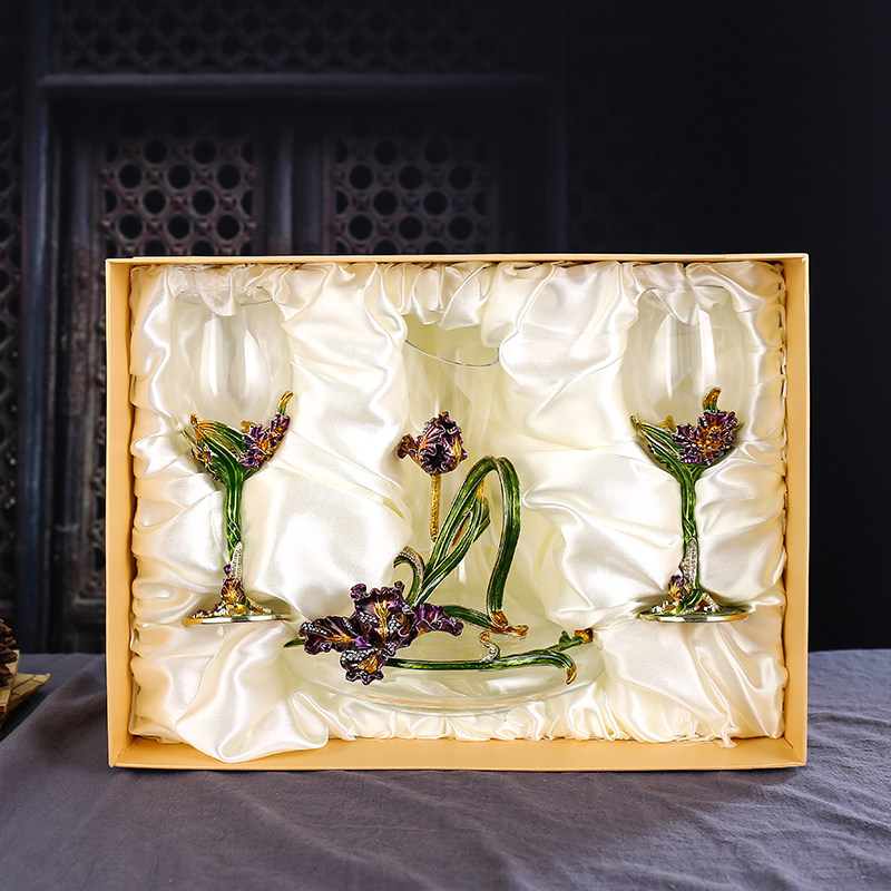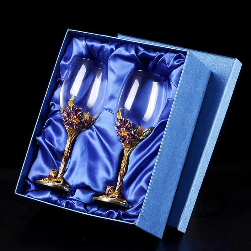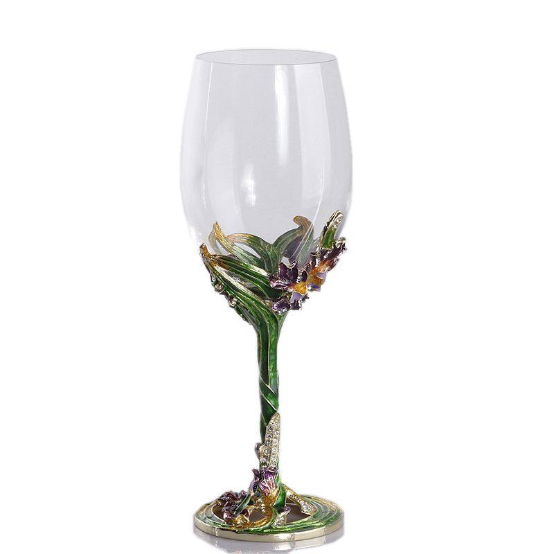 珐琅彩鸢尾结婚礼物水晶红酒杯