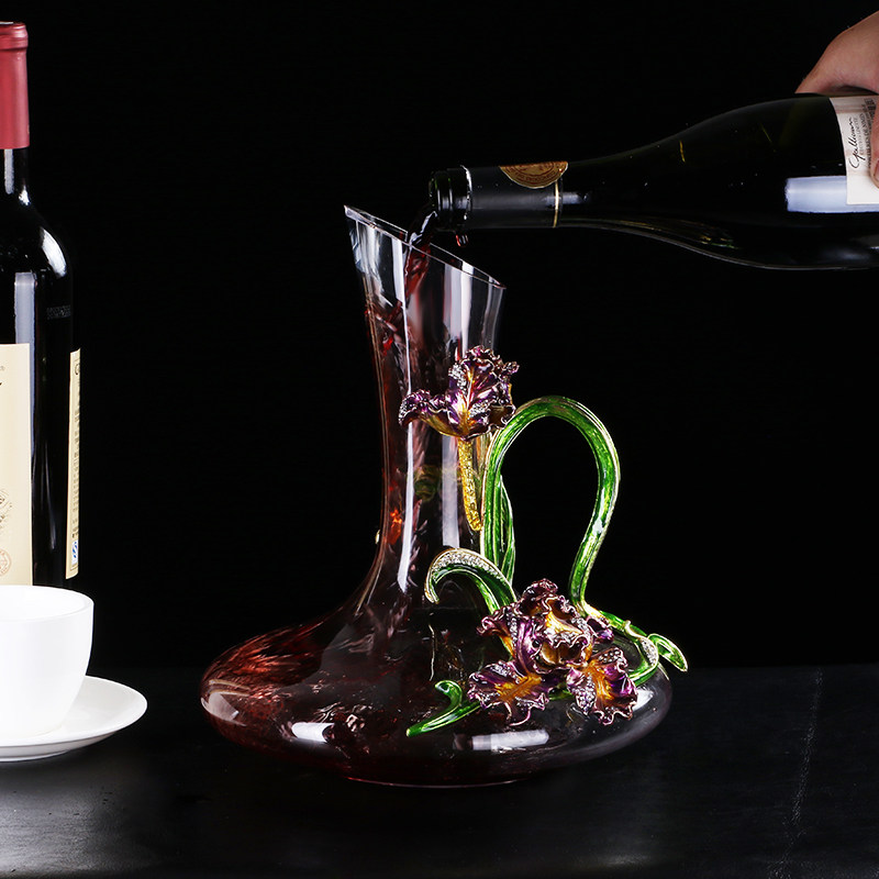 珐琅彩鸢尾无铅水晶红酒杯醒酒器套装创意高脚杯子高档结婚礼物